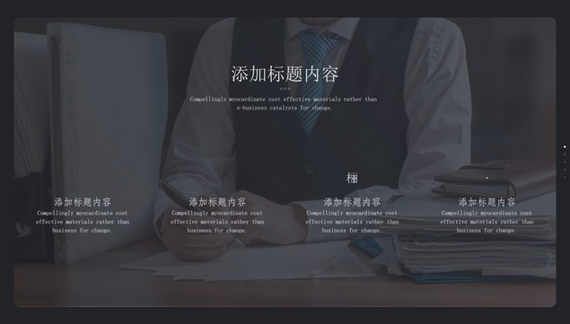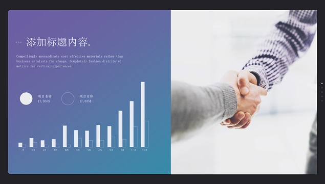 简介:商务大图背景、酷黑边框、半透明圆角矩形卡片式风格设计、极简文字创意封面,大图背景极简高端风格设计,简约扁平化时尚风,适合工作总结、工作汇报等场景应用的商务通用ppt模板。