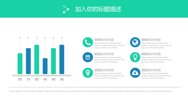简介:半透明创意几何图形设计主图,极简大标题文字创意封面、目录页、过渡页,小清新蓝绿配色,简约扁平化设计,精美图表图文排版,适合工作计划、工作汇报等场景应用的淡雅简洁蓝绿清新扁平化ppt模板。
