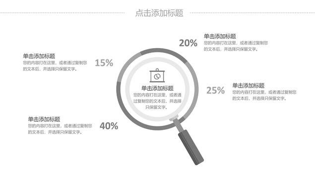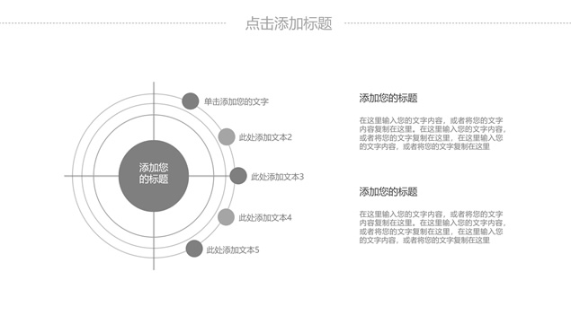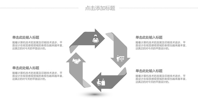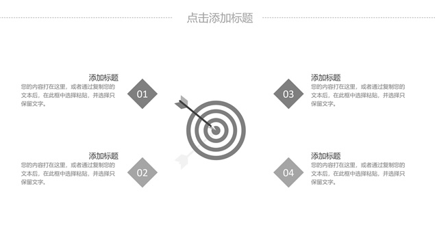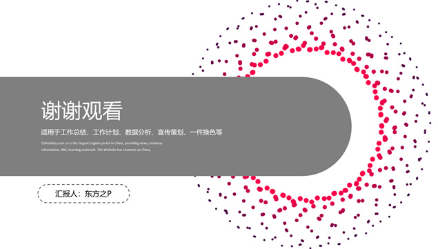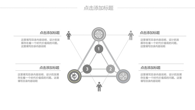 简介:圆点粒子圈艺术主图、圆角矩形创意封面,简约扁平化设计,商务灰配色,灯泡、箭头靶心、递进箭头、齿轮、四项循环、四叶草、放大镜等精美图表,适合工作总结、工作计划、数据分析、宣传策划等场景应用的圆点粒子简约灰商务通用ppt模板。