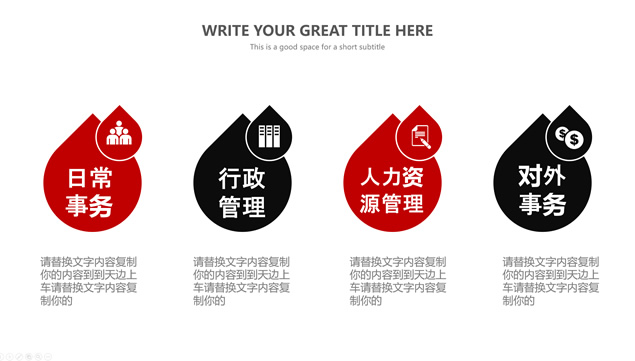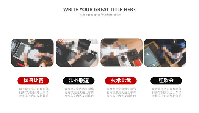 简介:商务图片与大标题文字创意封面,红黑配色,简约扁平化设计,精美商务图表,适合公司内部培训、商务活动宣讲、企业管理等场景应用的通用商务ppt模板。