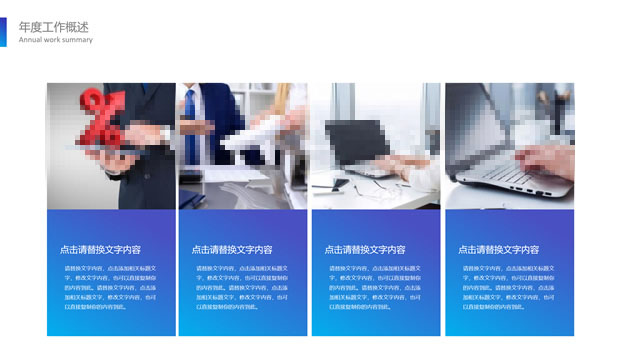 简介:商务大图背景、半透明渐变不规则几何图形蒙版创意封面,亮丽蓝紫渐变配色,大气简洁精美图文排版,适合商务工作总结、工作汇报、新年计划等场景应用的通用商务ppt模板。