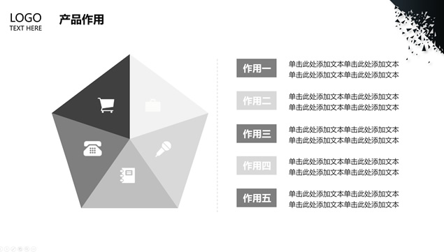 简介:碎三角创意背景,冲破圆、打破常规、突破、创新寓意主图,经典灰配色,扁平化设计,适合商务工作汇报、工作总结报告、公司介绍、产品介绍等场景应用的碎三角艺术范经典灰商务通用ppt模板。