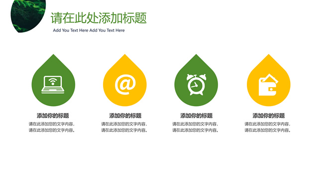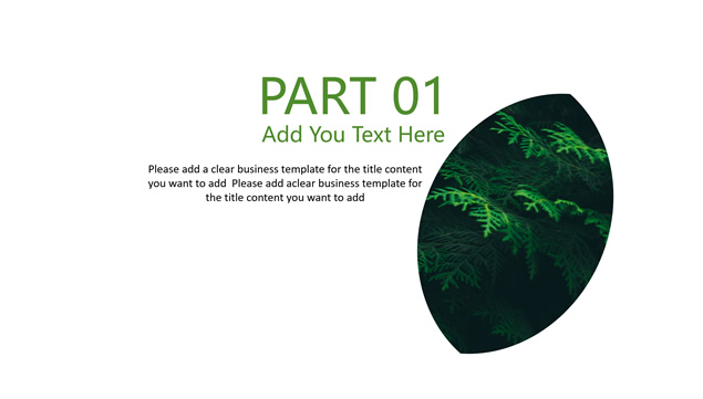 简介:茂密杉树叶子大图封面,绿叶创意设计目录、过渡页,简约扁平化设计,绿色小清新配色,适合商务工作汇报、工作总结报告的环保绿商务通用ppt模板。