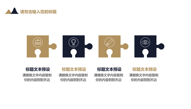 简介:几何图形裁图创意封面,简约扁平化设计,豪华金配色,精美图表图文排版,适合活动策划、年终总结、商务分析、工作计划等场景应用的商务展示ppt模板。