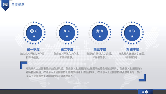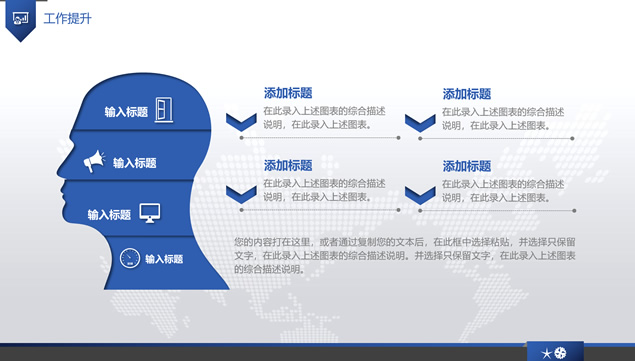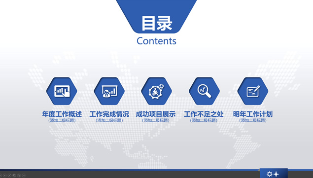 简介:年终汇报明年计划ppt模板,年度工作概述,工作完成情况,成功项目展示,工作不足之处,明年工作计划,几何图形及几何图形裁图创意封面,淡雅灰网点世界地图背景,内阴影元素设计,简约大气精美年终总结、年度汇报、明年计划ppt模板。
