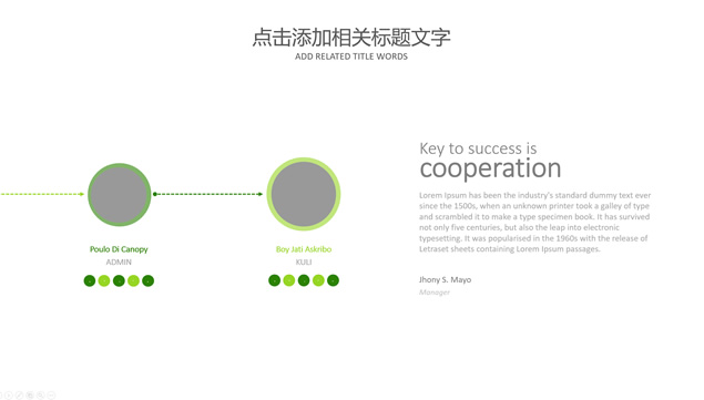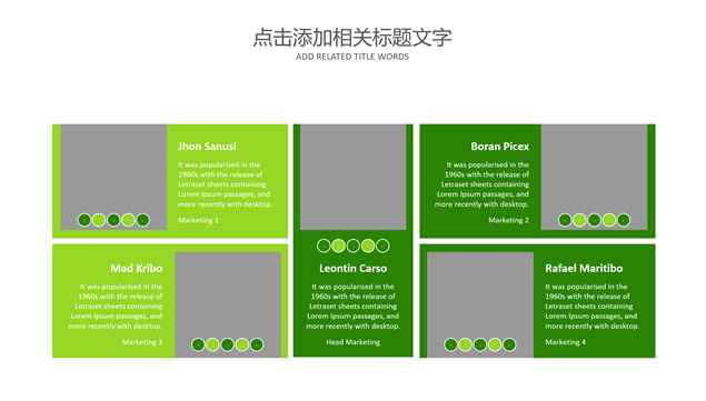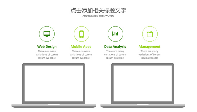 简介:工作总结计划ppt模板,年度工作概述,工作完成情况,成功项目展示,明年工作计划,商务办公桌讨论工作场景大图封面,绿色小清新配色,简约扁平化设计,自己填充图片的精美图文排版,适合工作总结、工作汇报、工作计划的通用商务ppt模板。