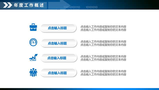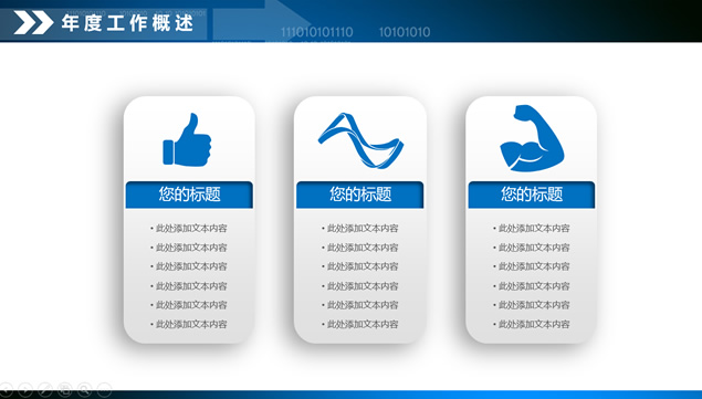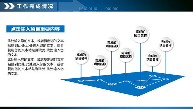 简介:数据分析总结汇报ppt模板,目录:年度工作概述,工作完成情况,项目成果展示,工作不足之处,明年工作计划,向上走势立体箭头图标封面,微立体风格设计,适合财务报表,数据分析统计的微立体商务蓝通用工作总结报告ppt模板。