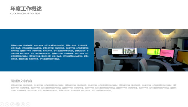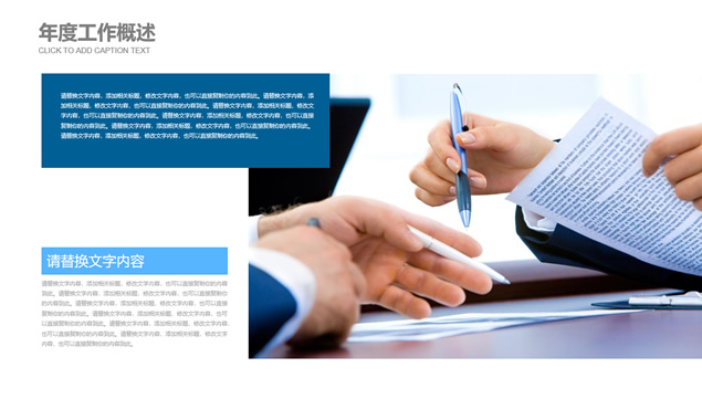 简介:仰视视角商务高楼大图背景,半透明几何图形创意封面,简约扁平化设计,商务蓝配色,精美多场景图表图文排版方案,商务蓝简洁数据分析工作汇报ppt模板。