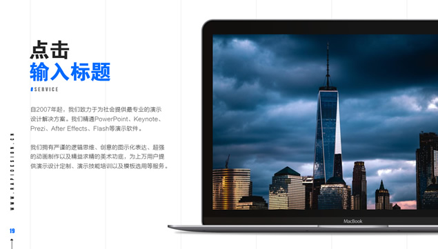 简介:暗黑休闲商务办公室办公桌场景背景,极简细线条与大字标题封面,时尚杂志风精美大图排版,简约扁平化风格,蓝黑简约大气商务工作汇报ppt模板。