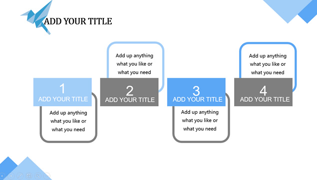 简介:折纸风千纸鹤艺术创意,仰视视觉高楼大图封面背景,几何图形元素创意,精美图表图文排版,适合商务工作汇报、工作总结报告的通用商务ppt模板。