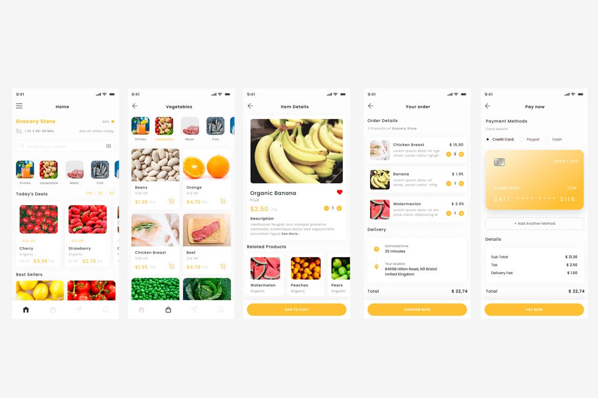 **带有多个屏幕的杂货店应用程序模板** 声明:所有作品均是用户自行上传分享,仅供网友学习交流,请勿作它用。若您的权益被侵害,请及时发邮件联系我们(v918pic@foxmail.com)。在您发送邮件后,工作人员会尽快处理,由于涉及内容不同,所需周期也不同,请您耐心等待。APPapp uiAPP应用FIGUi KitsUI套件ui设计应用程序杂货店APP移动应用 Behance 海报 链接