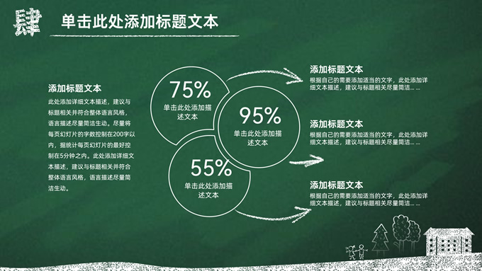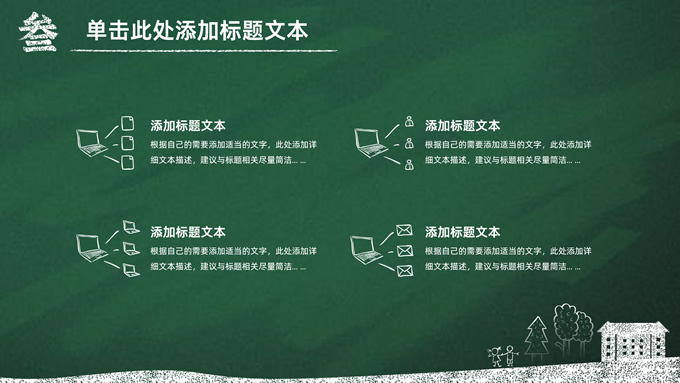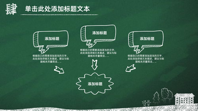 简介:粉笔手绘风小学教育教学工作汇报ppt模板,本模板共23P,绿色黑板背景,粉笔手绘创意粉笔字体标题文字封面、目录页、过渡页,粉笔手绘风图表简约卡通风版式内容页,适合工作汇报、工作总结、工作计划、小学课件等场景应用的小学教育通用ppt模板。