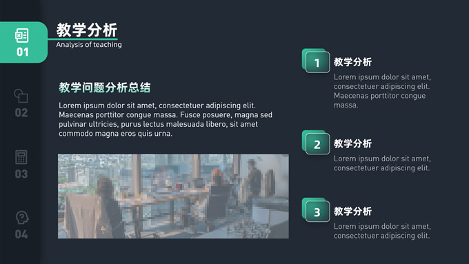 简介:简约商务毛玻璃风教育教学汇报通用ppt模板,本模板共10P,该作品为简约商务毛玻璃风,设计手法上运用了当下火热的毛玻璃风格,设计颜色主体为蓝灰色及绿色,该作品是学习各PPT公众号毛玻璃做法时的练习作品,封面的设计上参考了广告网站上的设计手法,该设计主体为教育教学,其适用于何种工作汇报场景,P界达人 Wning 作品。