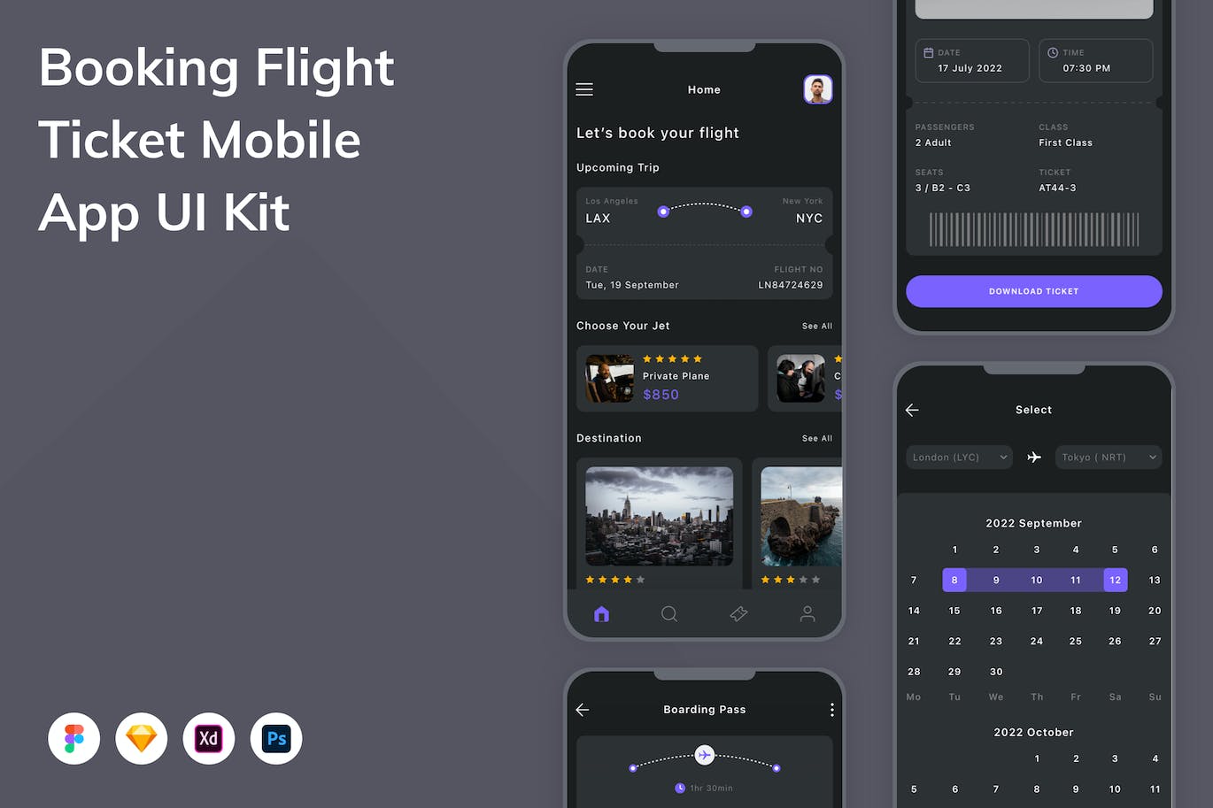 预订机票移动应用程序UI套件的设计符合现代设计趋势。