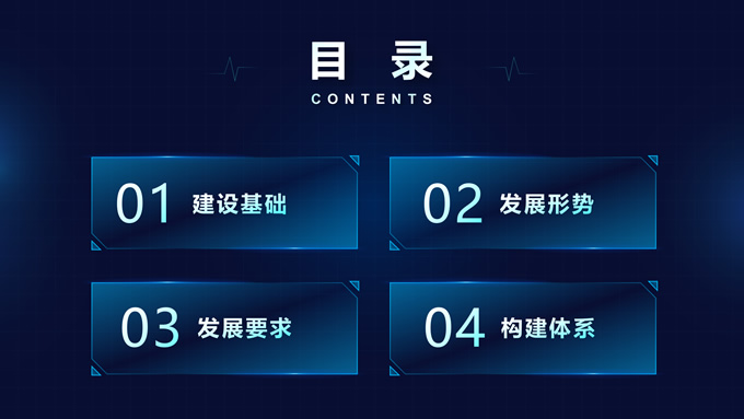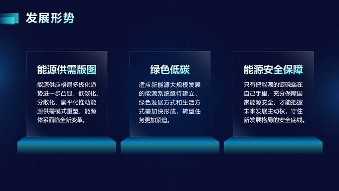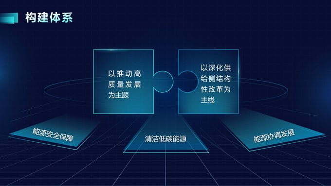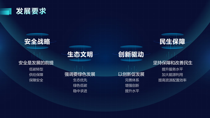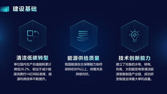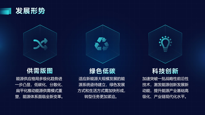 简介:推动新时代能源高质量发展深色科技风电力ppt模板,本模板共18P,目录:建设基础、发展形势、发展要求、构建体系,太阳能电池板背景大图,科技线条,极简标题文字封面,科技蓝配色,半透明渐变图表,科技元素修饰科技风版式内容页,适合电力工作汇报、电力服务项目汇报等场景应用的电力行业通用ppt模板。