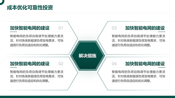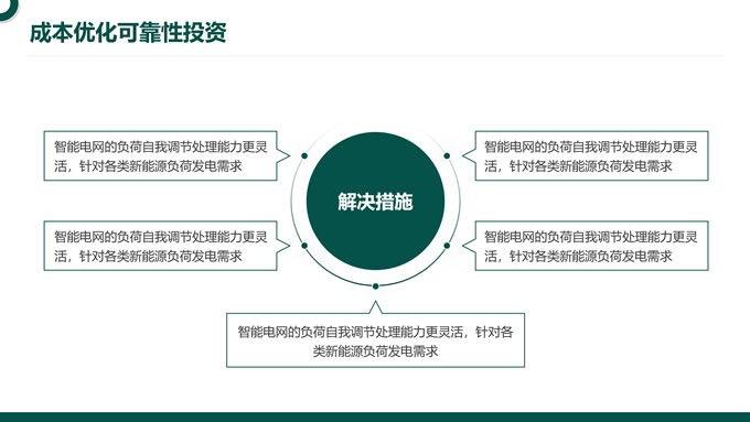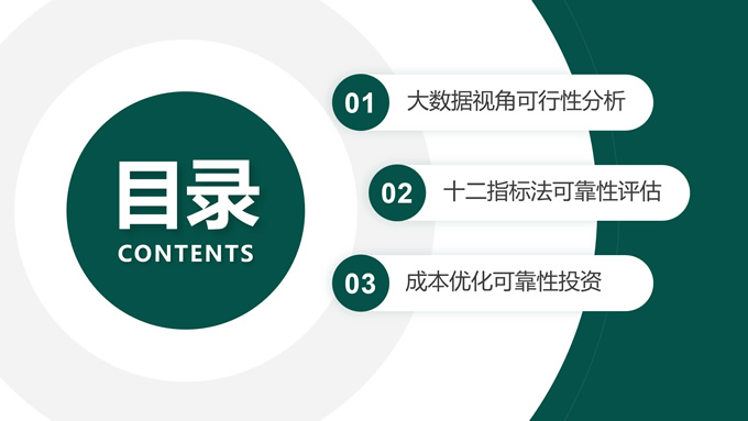 简介:绿色简约技能竞赛电力ppt模板,本模板共20P,目录:大数据视角可行性分析、十二指标法可靠性评估、成本优化可靠性投资,圆环几何风标题文字简约封面、目录页、过渡页,电力绿配色,阴影风格图表,简约清新实用版式内容页,适合电力工作汇报、项目汇报、电力培训、技能竞赛等场景应用的电力行业通用ppt模板。