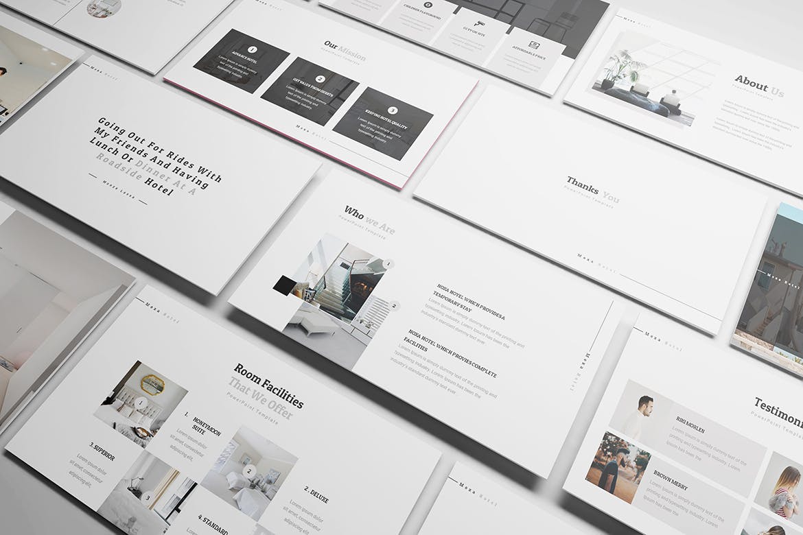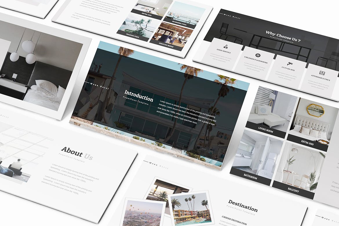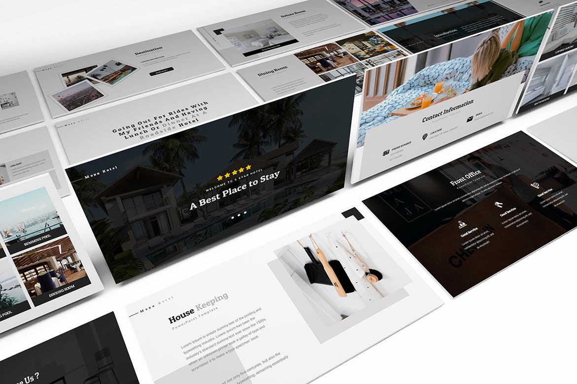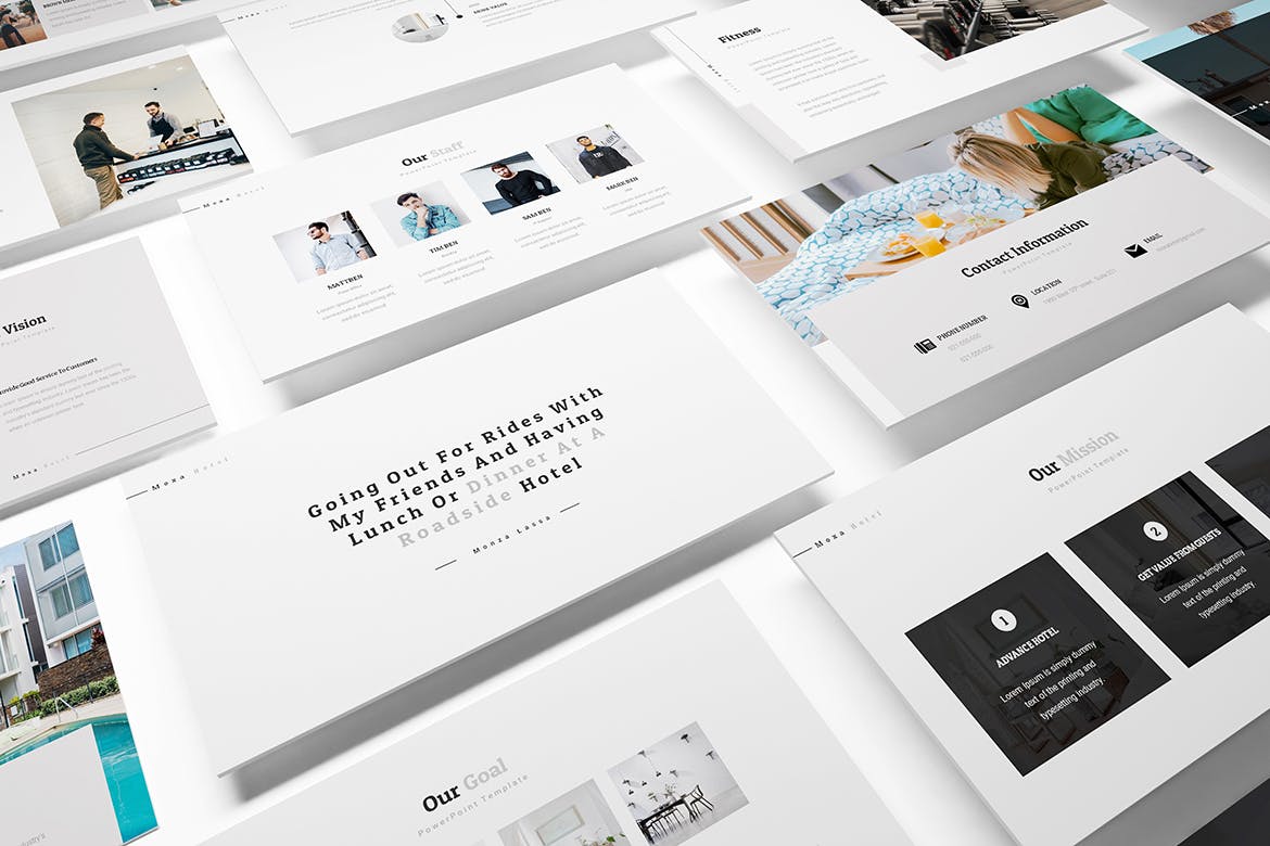 Moxa Hotel Powerpoint演示模板,适合您的酒店和酒店业务。清洁和专业的外观使您的医疗业务脱颖而出,具有简单,干净和简约的设计理念。用于高质量的品牌展示资产。