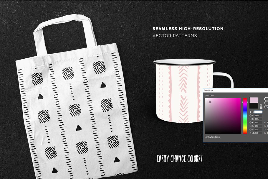 这组合集包括了20款非洲部落文化矢量图案,它们都是手工绘制的图案,灵感来自马里少数民族使用泥染织物的技术。