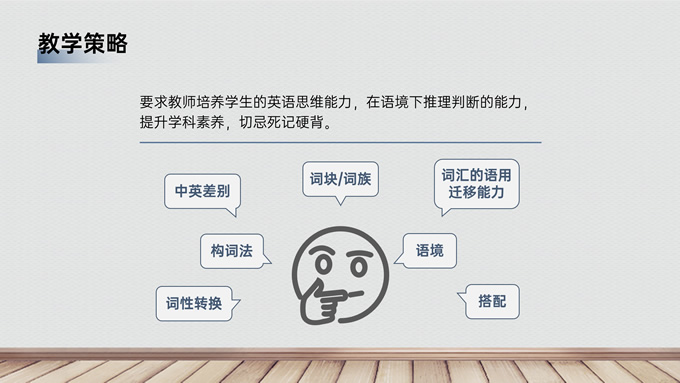 简介:教育教学英语课件ppt模板,本模板共10页,蓝灰色,清新简洁,具备通用性,包括封面、目录、过渡页及教学工作时常见内容页,所有内容均可编辑,造型简约,版式丰富,字体可一键替换,颜色可一键更改,图片可更换,在日常使用时,可多页复制,满足客户需求,只需稍加改动即可完成教育教学课件PPT的制作,P界达人 daaa白 作品。