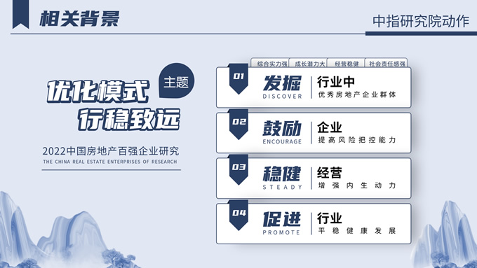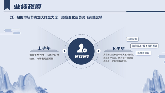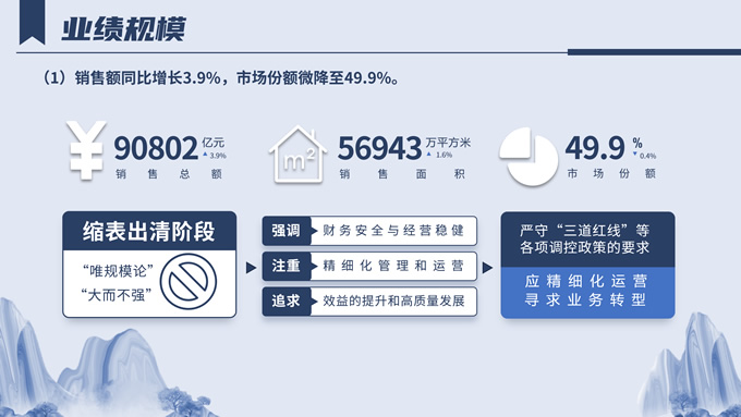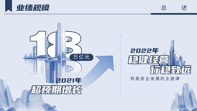 简介:中国房地产百强企业研究报告ppt模板,本模板共20P,分别从相关背景、业绩规模、运营表现、风险管理等方面进行呈现,非常适合总结和项目策划,作品以蓝色和灰色为基调,采用古风元素和现代相结合的形式,呈现出简约大气、超然脱俗的画面,P界达人 风从东方来 作品。