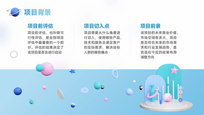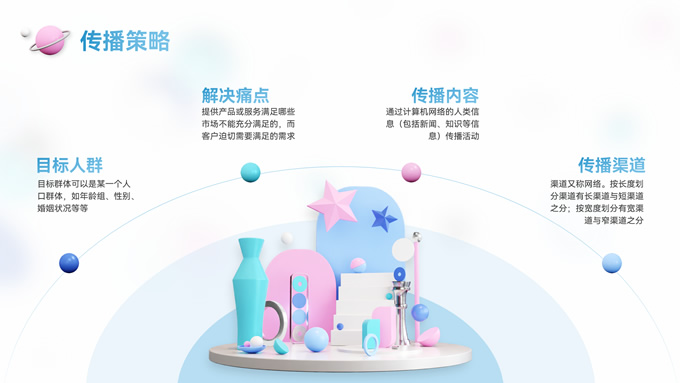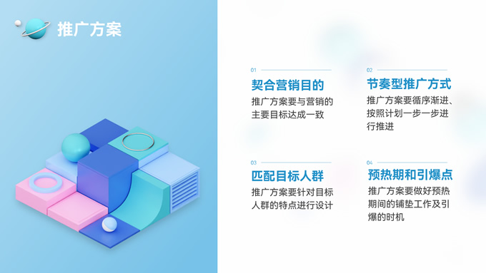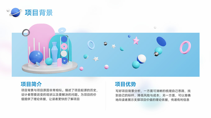 简介:时尚抽象立体风格营销项目策划ppt模板,本套PPT共31页,设计风格采用抽象立体三维模型风格,光影效果细腻,造型独特美观,整体配色简洁明快,清新大方,版式丰富,涵盖多种实际工作中使用到的逻辑关系、数据图表、表格、信息图示等,正文页文本内容明确,用户只需稍加改动内容,即可快速制作一份精美的营销项目策划报告,P界达人 赵华琚 作品。