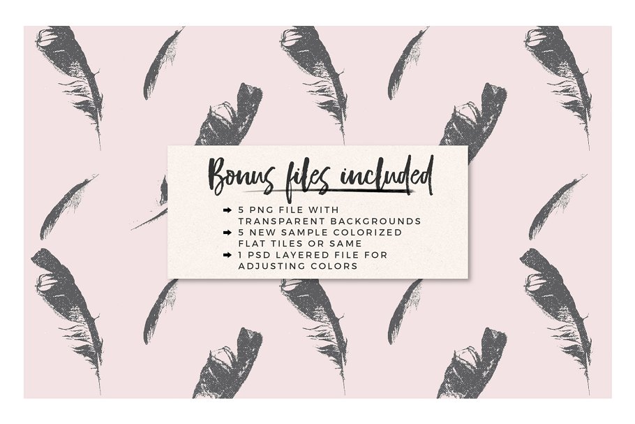 这组合集包括了9个无缝的复古羽毛图案,加上9个匹配的12“x12”,jpg文件。