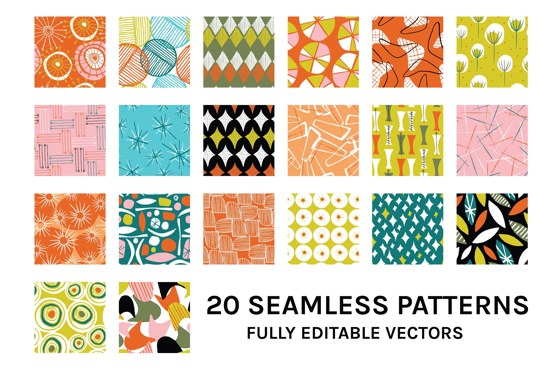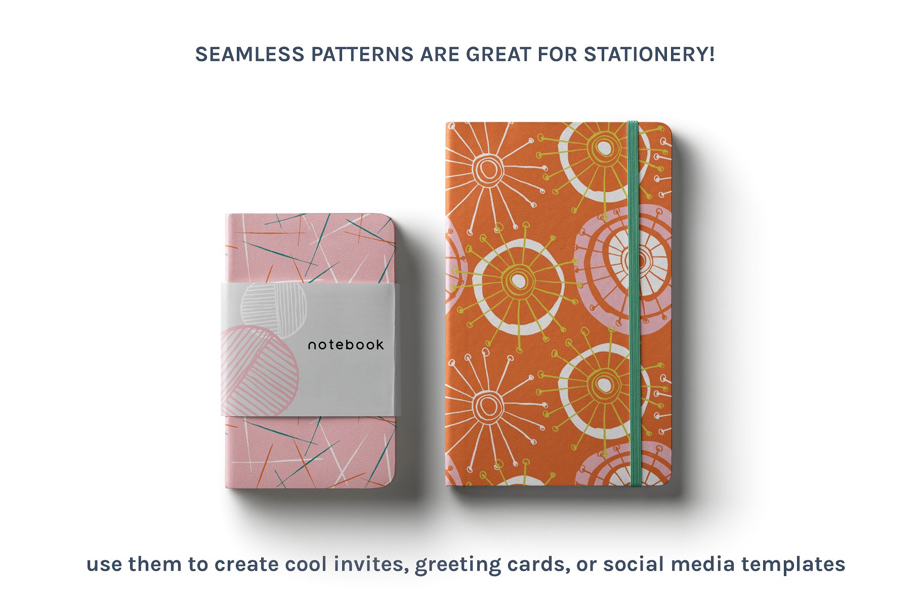 这组复古摩登派五十年代图案纹理合集的灵感来自于50年代,可用于设计名片到产品包装等其他任何您能想到的创意项目。