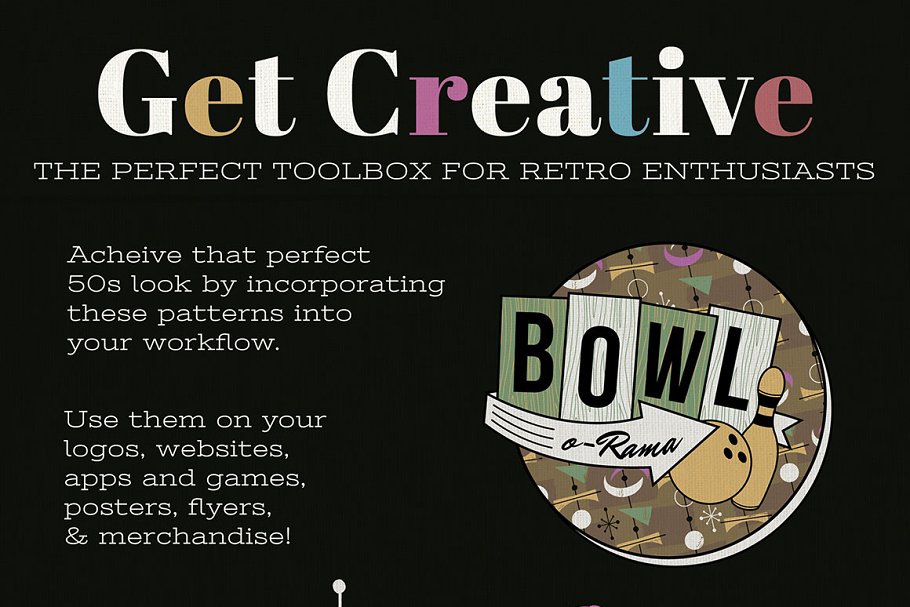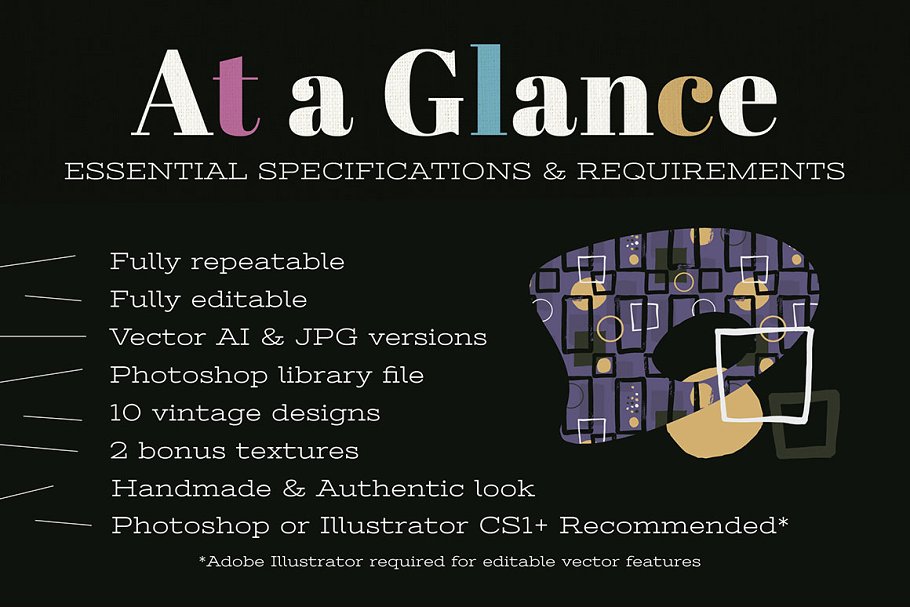 这些纹理的灵感都是来源于五六十年代,手绘制作而成,再转换为矢量格式,允许您编辑和调整大小,而不会在质量上有任何损失。