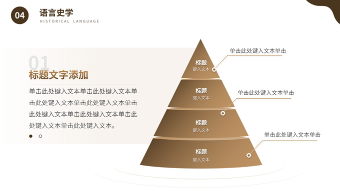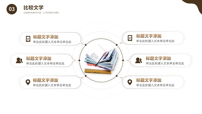 简介:文学气息几何风大学文学专业课程课件ppt模板,本模板共19P,目录:文学概论、当代文学、比较文学、语言史学,褐色配色,几何风标题文字封面、目录页、过渡页,文学气息简约版式内容页,适合文学专业课程课件、教师说课等场景应用的大学通用课件ppt模板。