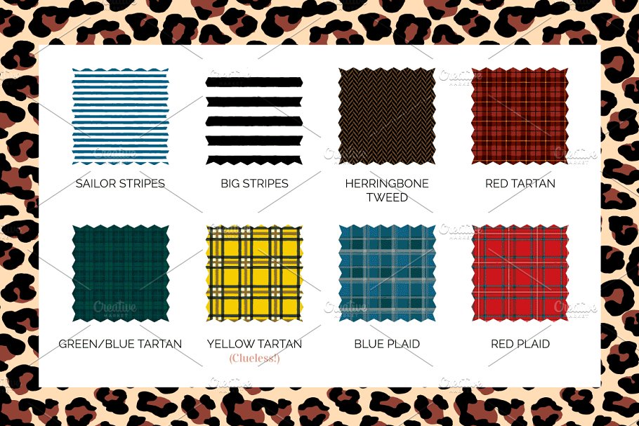 从豹纹到圆点花纹,犬牙花纹和人字形花纹,这一系列的图案提供了16个经典的设计纹理,可完美的用于网页背景,装饰杂志元素,甚至作为照片或插图的一部分。