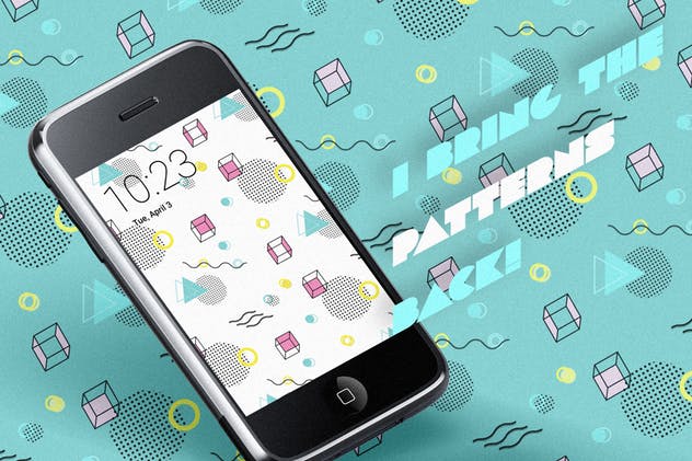 这组孟菲斯太空纹理合集有两种风格(几何平面和复古3d),能够让您的设计充满激情!