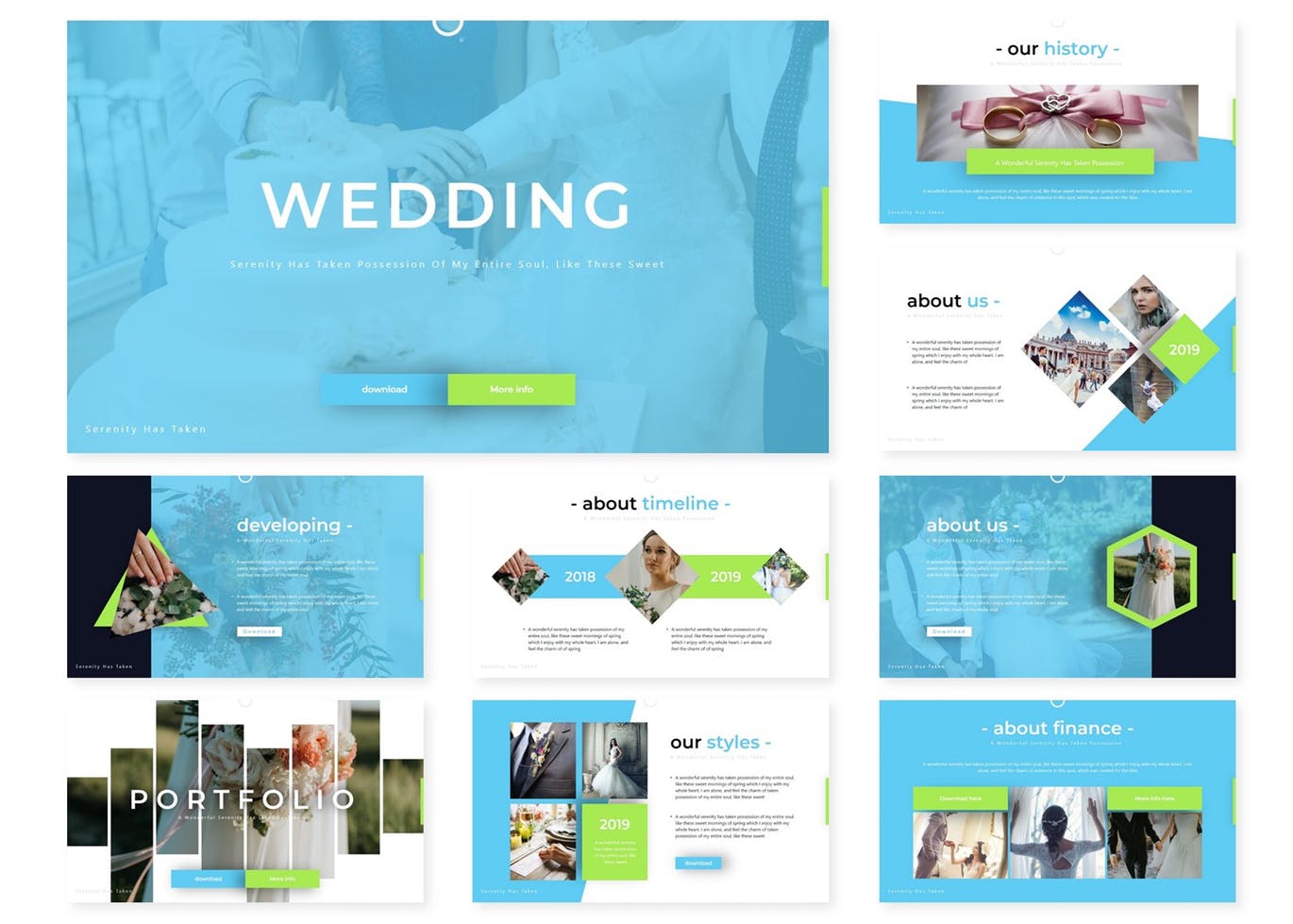 这次老不湿分享的是,时尚高端简约清新配色的婚礼powerpoint幻灯片演示模板(pptx)幻灯片模板下载,适用于所有业务和个人需求的精美演示模板。此模板上的所有元素均可从powerpoint形状进行编辑,无需其他软件,仅在powerpoint上进行编辑,输入内容,将图像替换为占位符,更改颜色,并且所有演示文稿都包含动画幻灯片并将幻灯片呈现给世界,干杯…… :)