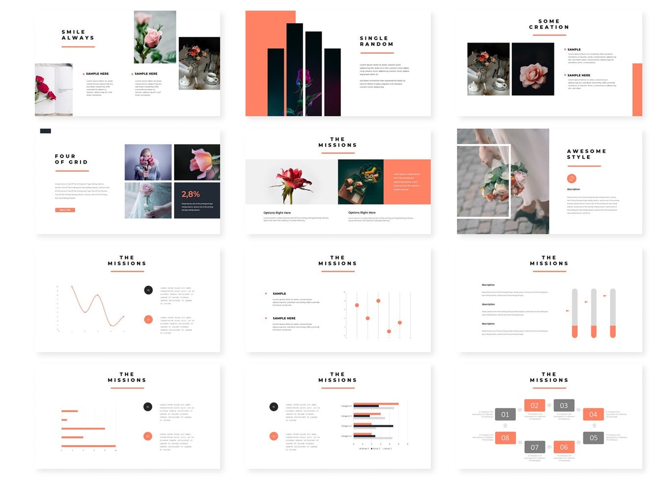 这次老不湿分享的是,优雅简约时尚高端多用途的高品质powerpoint幻灯片演示模板(pptx),预制颜色变化(5色)立即获取!,一个伟大的Powerpoint模板,用于多功能演示业务或个人需求。此模板上的所有元素均可从powerpoint形状进行编辑,无需其他软件,仅在powerpoint上进行编辑,输入内容,将图像替换为占位符,更改颜色,并且所有演示文稿都包含动画幻灯片并将幻灯片呈现给世界,干杯…… :)