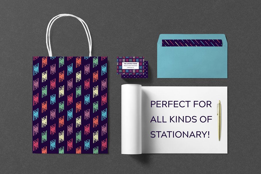 这组高度原创的醒目复古图案合集包含了各种各样的无缝图案,其中包括一些有趣的经典图案,以及一些让你项目脱颖而出的原创设计图案。