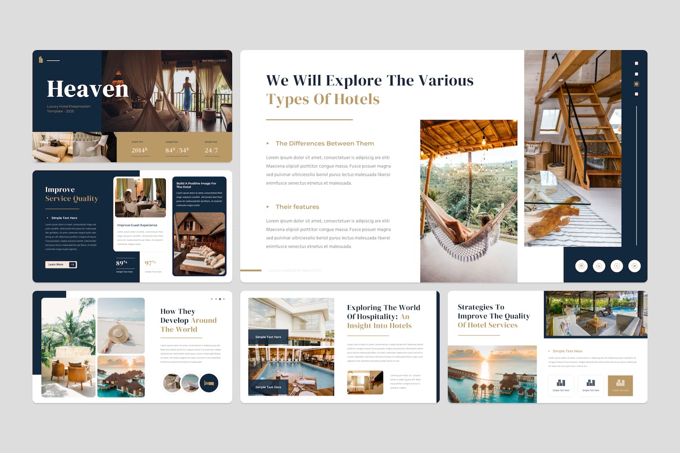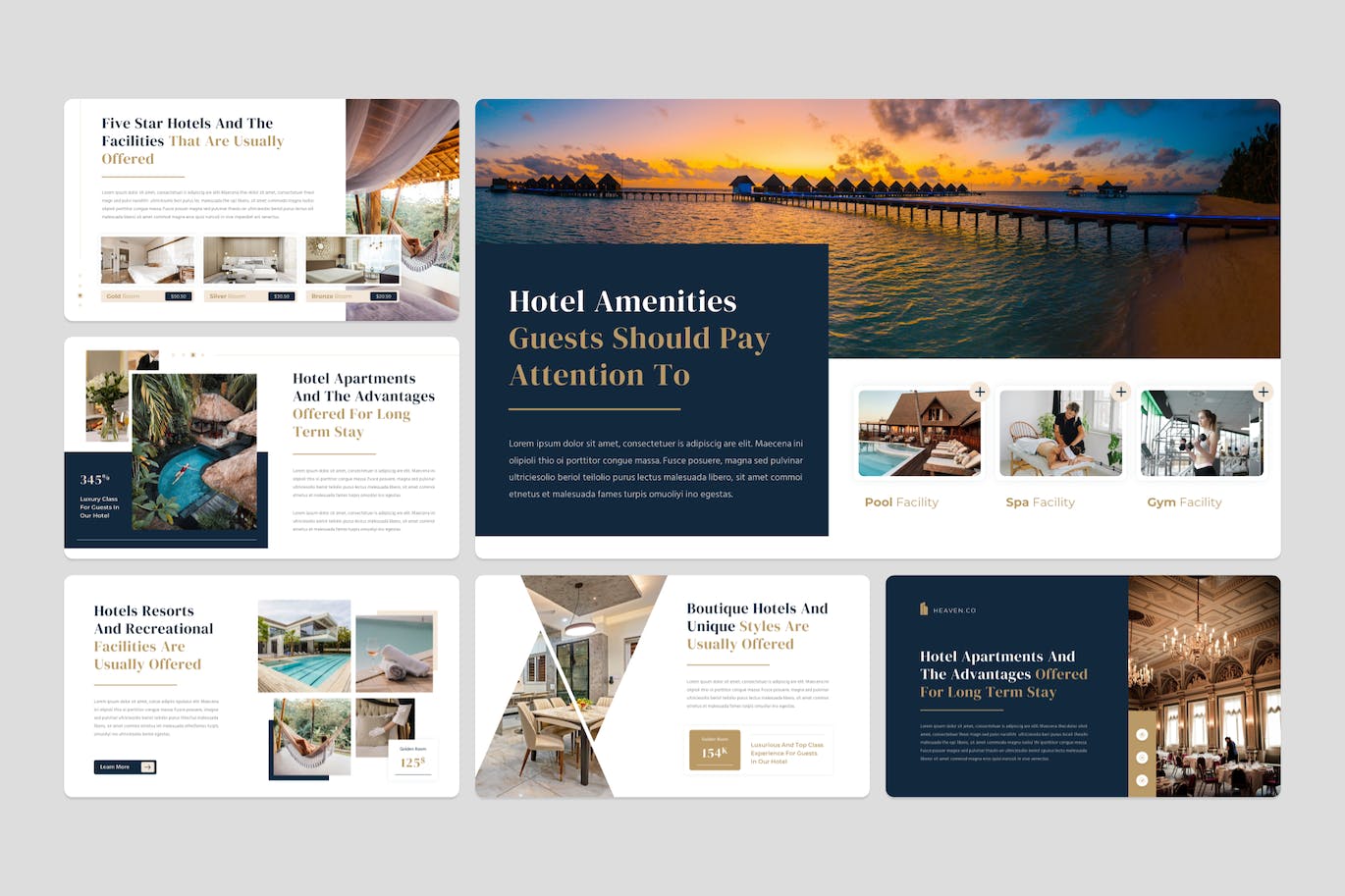 豪华酒店主题演讲模板将现代设计与专业布局相结合,打造真正迷人的演示文稿。使用其优雅、创意和独特的功能轻松展示您的设计。以令人惊叹的视觉效果和动态给您的观众留下深刻印象。