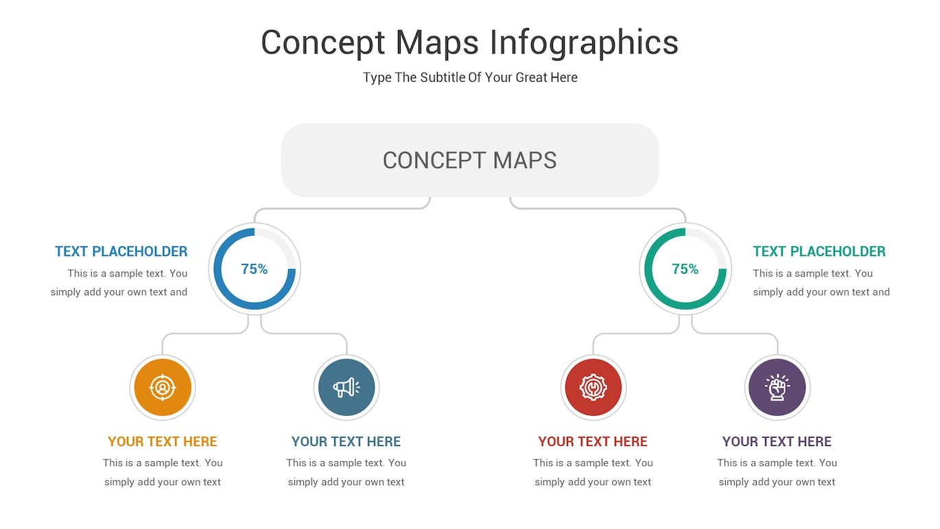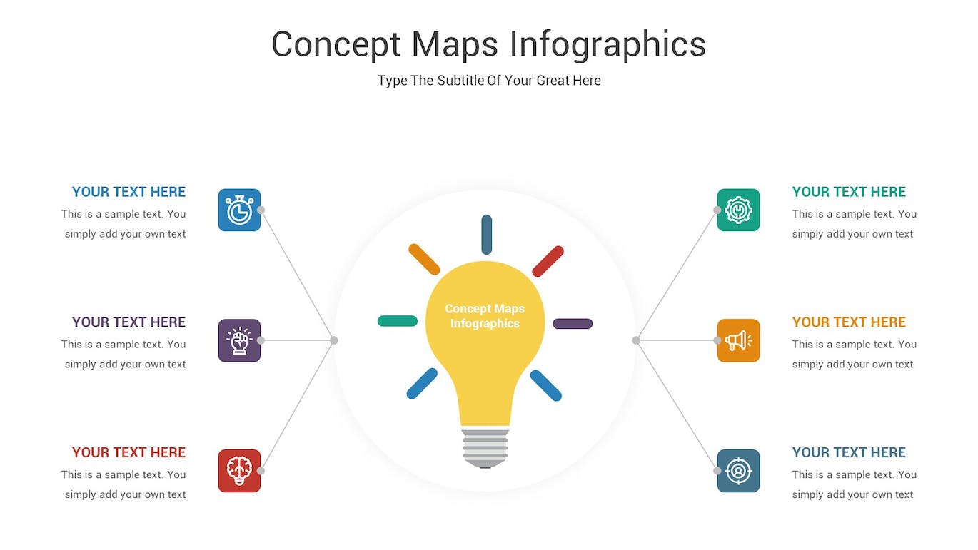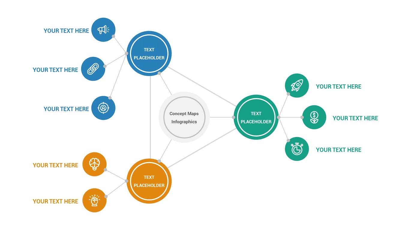 概念图信息图表主题演讲模板使您可以轻松地展示您对项目的想法,以简单轻松地了解您的周围环境。您可以轻松编辑和填写您的个​​人内容,所有对象都是矢量对象,并且它们是完全可编辑的,所有使用的图标都是智能对象和矢量,这意味着您可以轻松更改它们尺寸和颜色到任何你想要的尺寸,而不会失去分辨率。