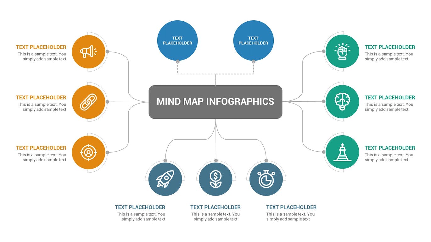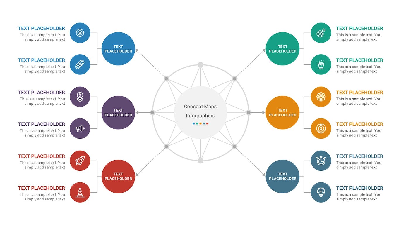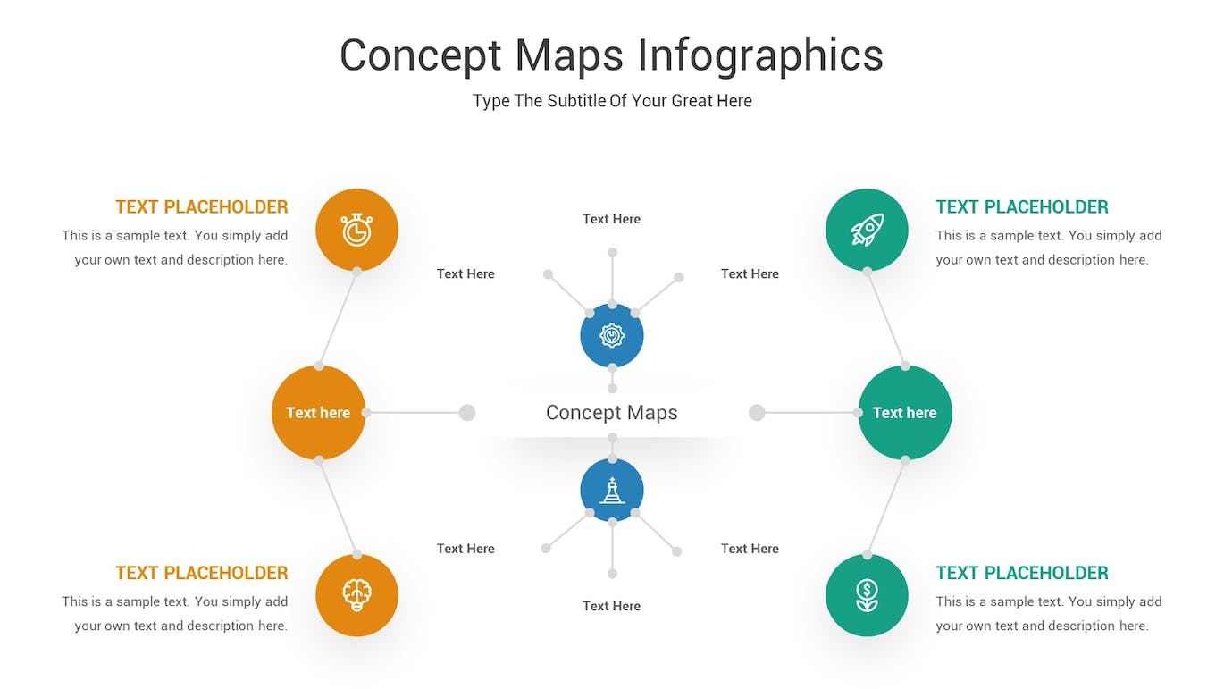 概念图信息图表主题演讲模板使您可以轻松地展示您对项目的想法,以简单轻松地了解您的周围环境。您可以轻松编辑和填写您的个​​人内容,所有对象都是矢量对象,并且它们是完全可编辑的,所有使用的图标都是智能对象和矢量,这意味着您可以轻松更改它们尺寸和颜色到任何你想要的尺寸,而不会失去分辨率。