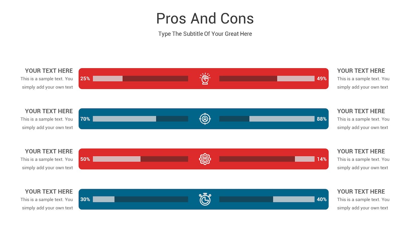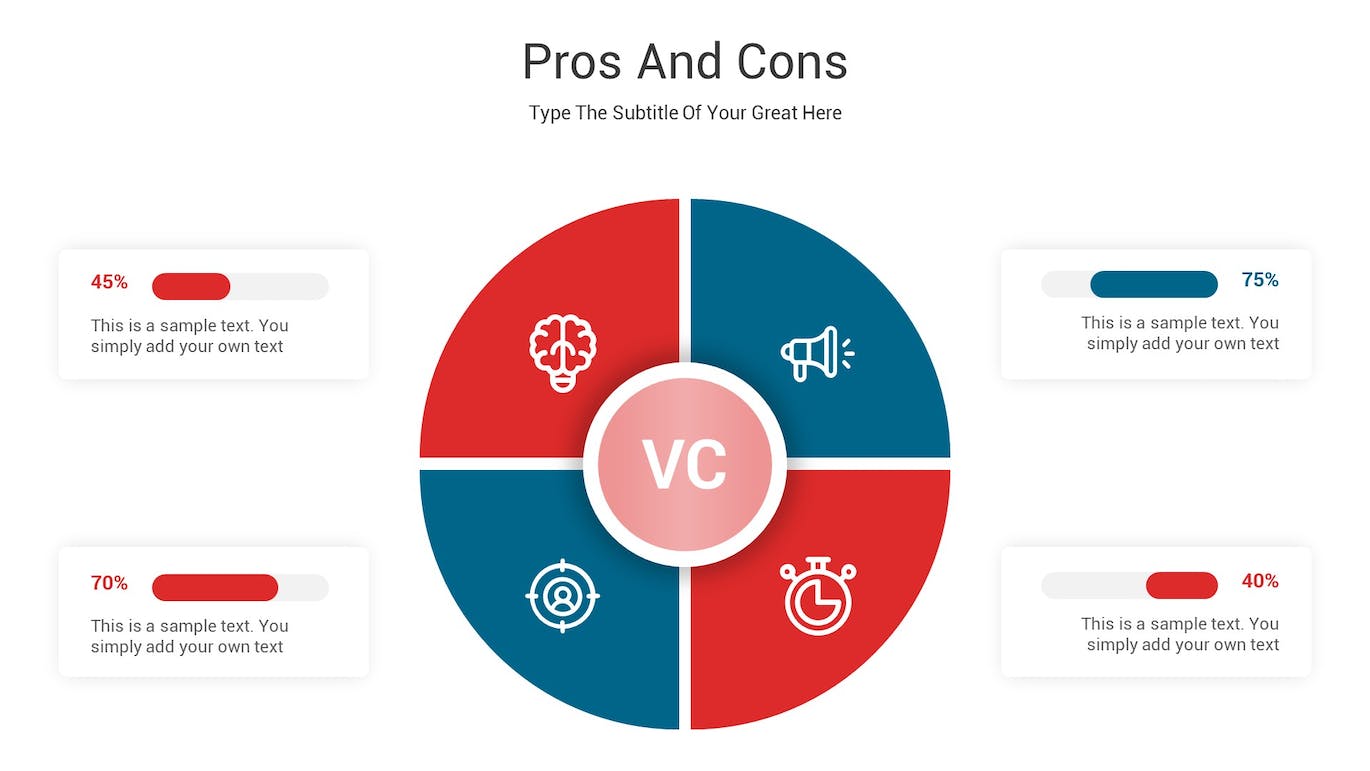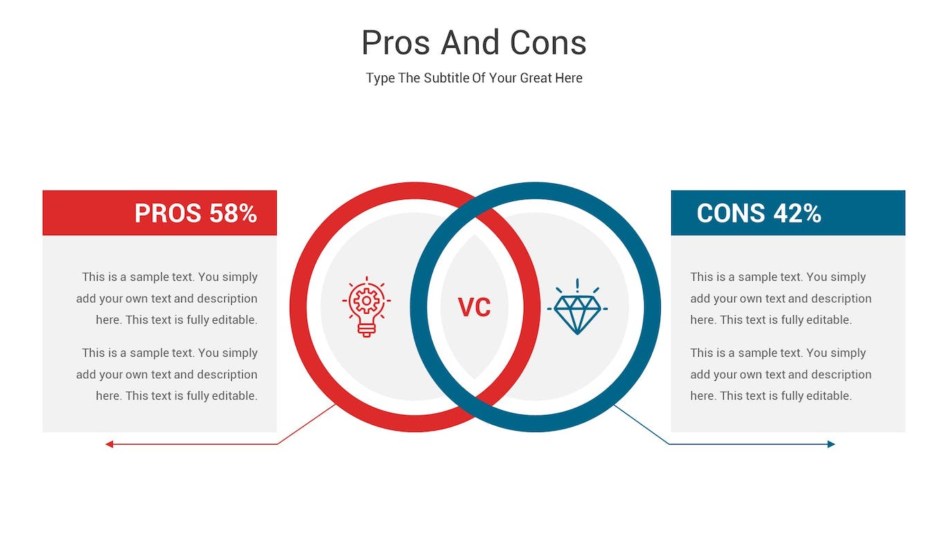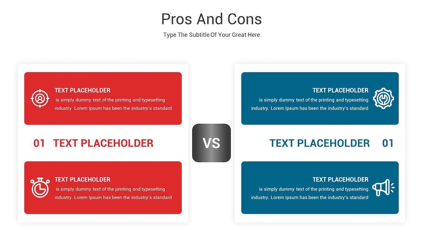 比较优缺点Keynote幻灯片设计模板使您可以轻松地展示您对项目的想法,以简单轻松地了解您的周围环境。您可以轻松编辑和填写您的个​​人内容,所有对象都是矢量对象,并且它们是完全可编辑的,所有使用的图标都是智能对象和矢量,这意味着您可以轻松更改它们尺寸和颜色到任何你想要的尺寸,而不会失去分辨率。