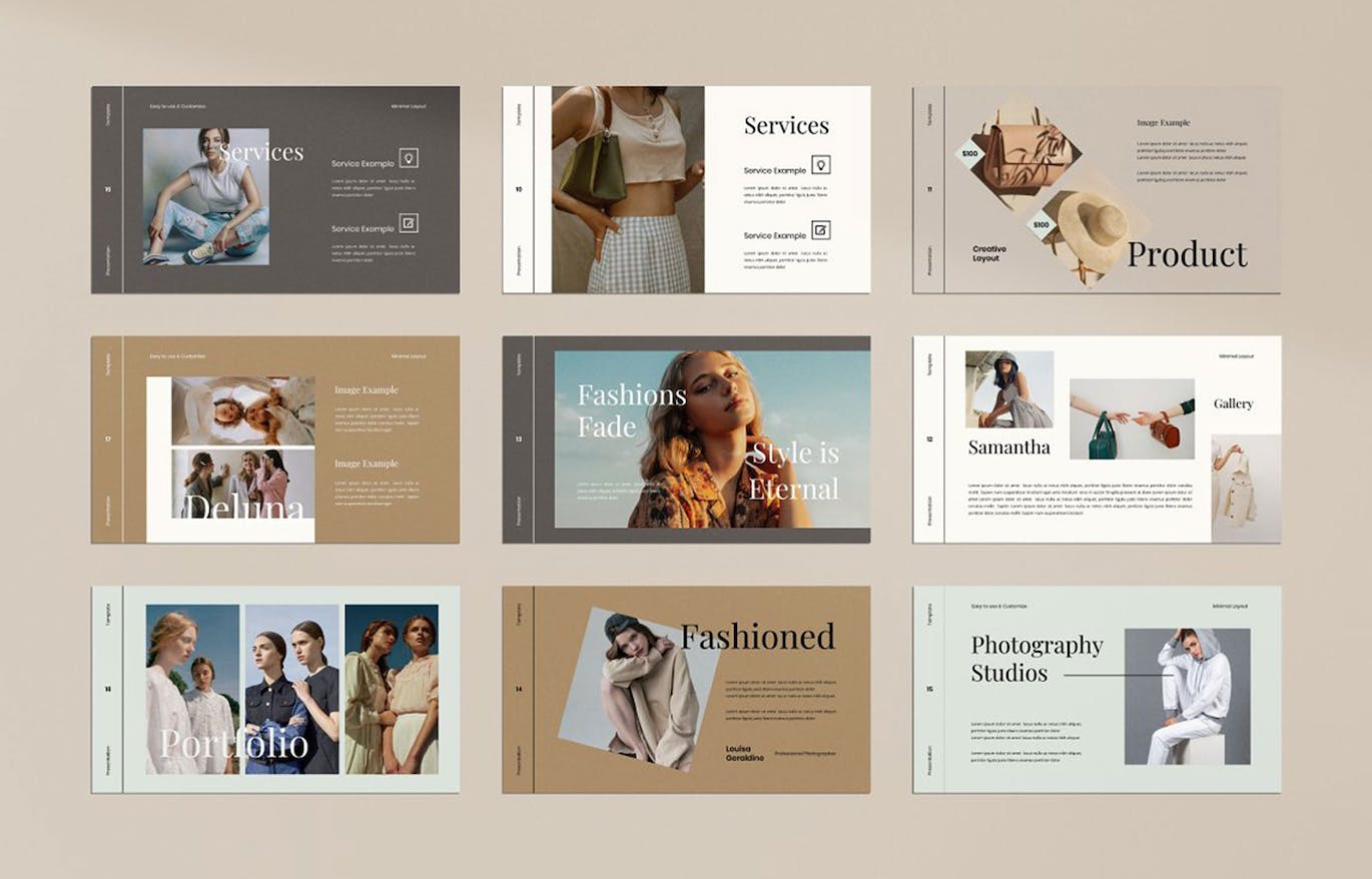 极简品牌服装图册展示Keynote幻灯片模板,其多用途设计使您可以将其用于任何领域,包括摄影、作品集、商业、时尚和提案演示。