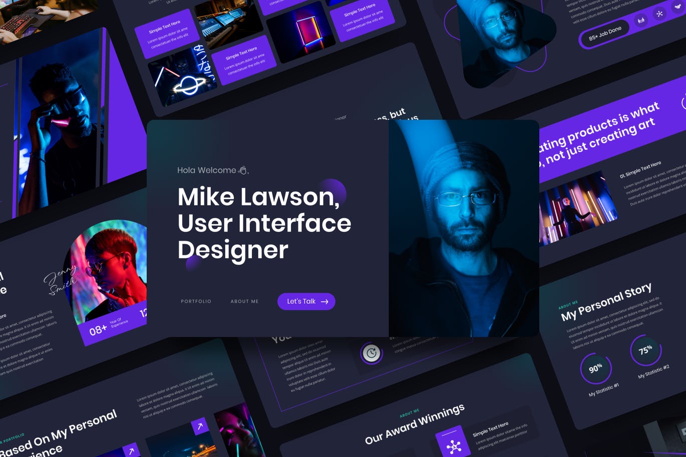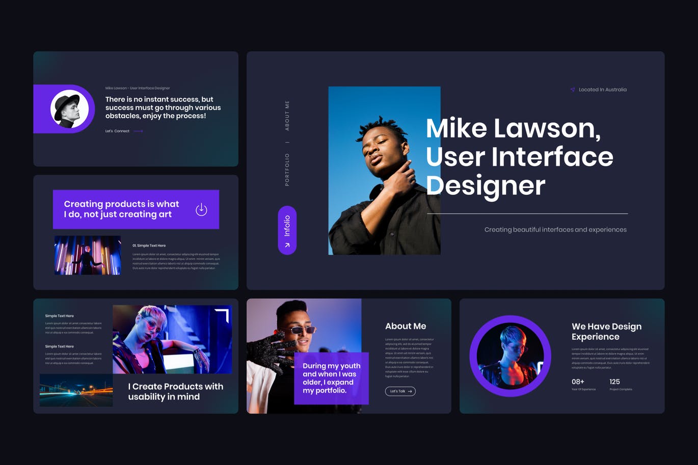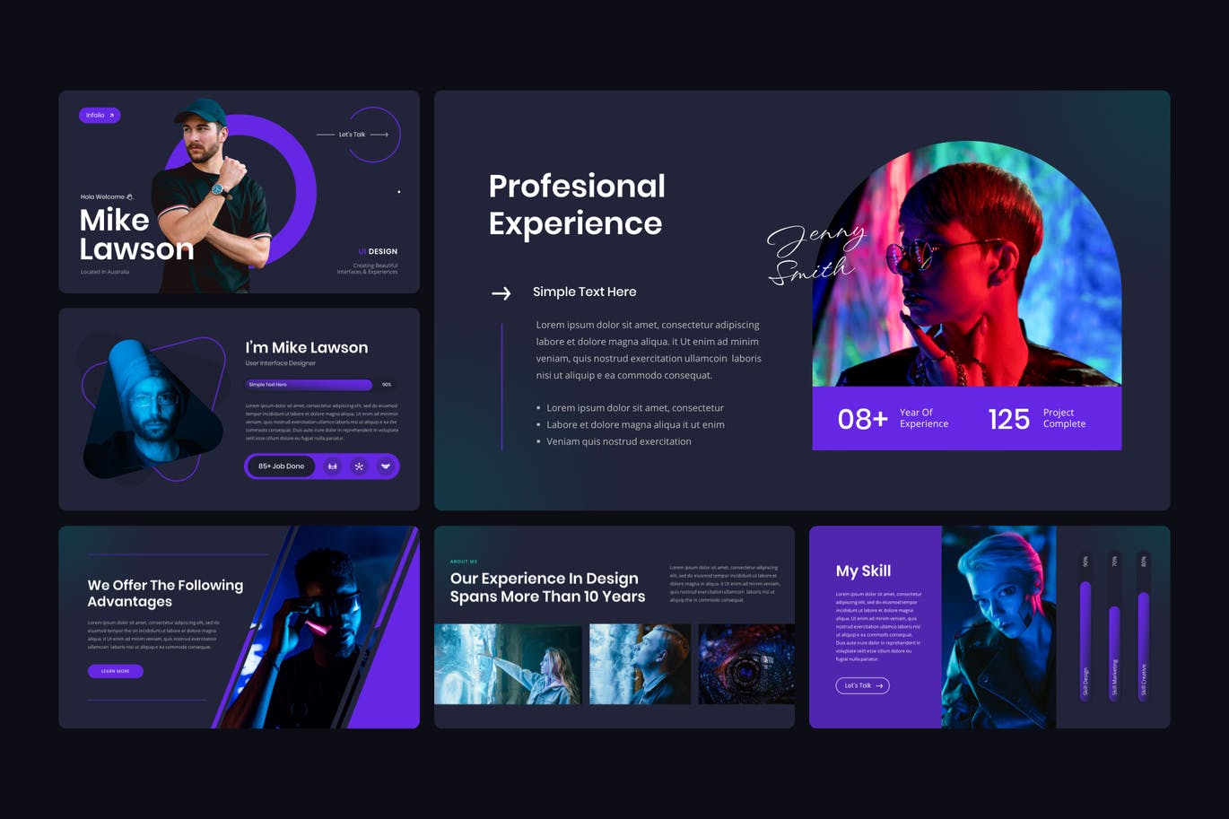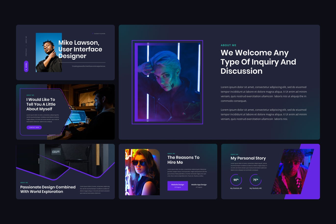 暗黑主题个人作品集Keynote幻灯片模板,此演示模板可用于各种目的,例如:商业、投资组合、公司、个人、投资组合、简历、简历,也可用于个人投资组合。此演示模板包含现代、优雅、创意、专业和独特的布局。