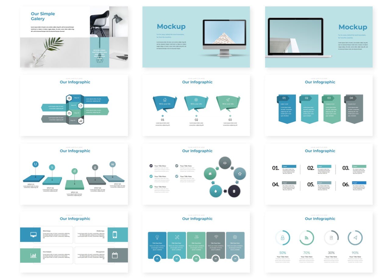- 150 多张幻灯片,使用 5 种预制颜色