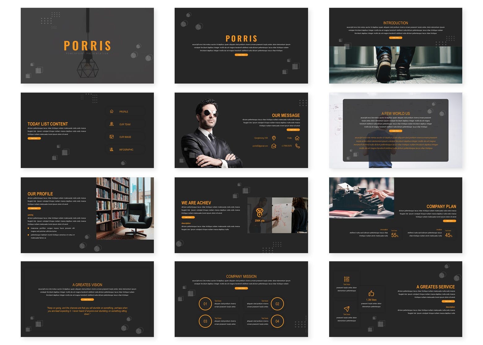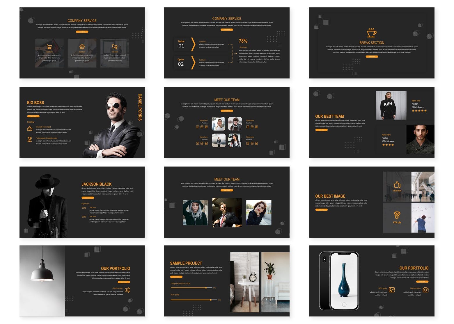 高端深色风格PPT/Keynote/谷歌幻灯片三合一模板,这是一个干净简单的演示模板,包含 30 张幻灯片,其中包含由专业设计师创建的 Slidemaster 和设备样机,很容易改变配色方案。