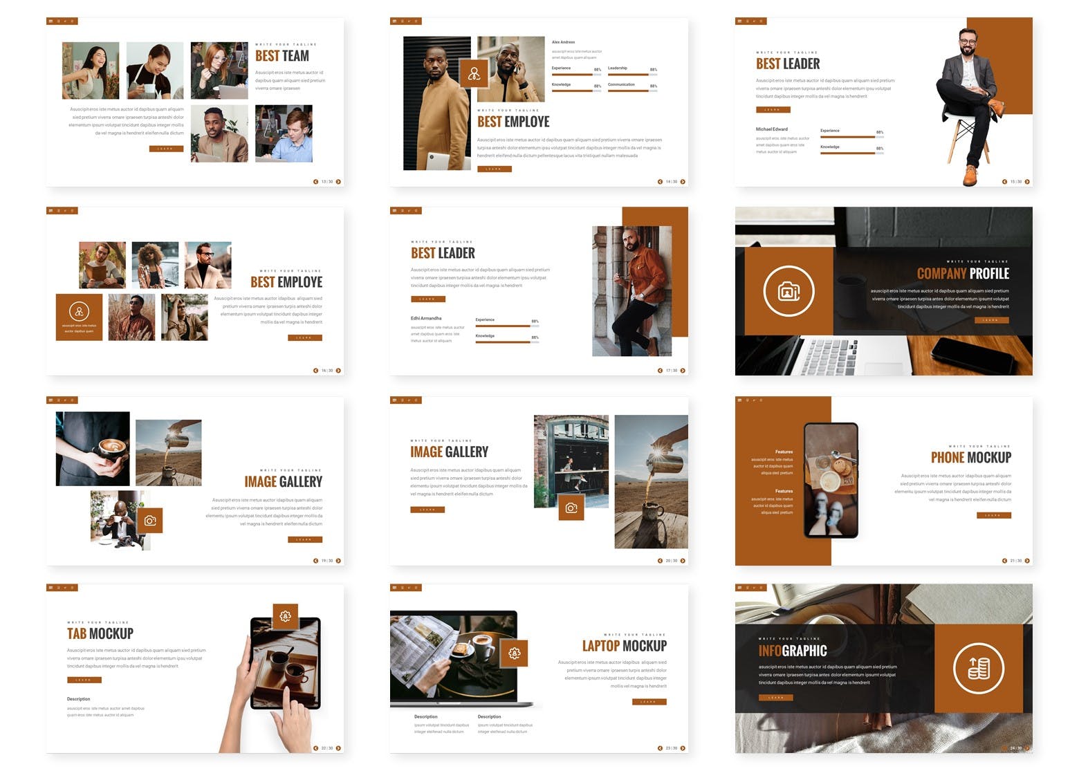 时尚推广PPT/Keynote/谷歌幻灯片三合一模板,这是一个干净简单的演示模板,包含 30 张幻灯片,其中包含由专业设计师创建的 Slidemaster 和设备样机,很容易改变配色方案。