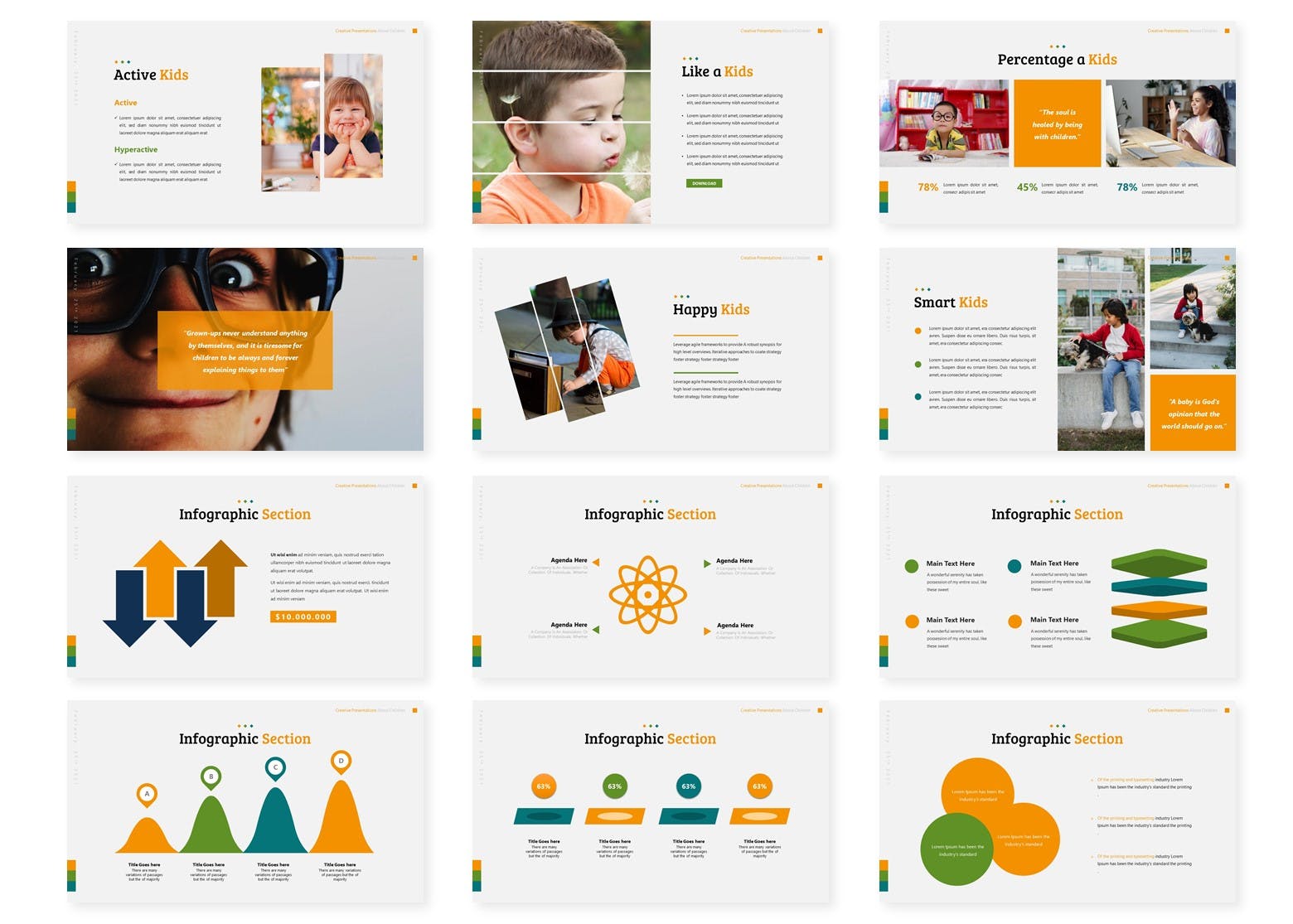 儿童活动PPT/Keynote/谷歌幻灯片三合一模板,一款出色的 Google 幻灯片模板、Keynote模板和 Powerpoint模板,可满足多用途演示业务或个人需求。此模板上的所有元素均可从 Google 幻灯片、Keynote 模板、Powerpoint 模板形状进行编辑,无需其他软件,只需在模板上编辑即可输入您的内容,将您的图像替换为占位符,所有演示文稿都包含一张动画幻灯片,并向客户展示您的幻灯片。