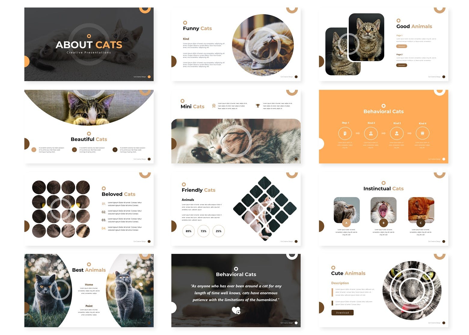 猫咪宠物PPT/Keynote/谷歌幻灯片三合一模板,一款出色的 Google 幻灯片模板、Keynote模板和 Powerpoint模板,可满足多用途演示业务或个人需求。此模板上的所有元素均可从 Google 幻灯片、Keynote 模板、Powerpoint 模板形状进行编辑,无需其他软件,只需在模板上编辑即可输入您的内容,将您的图像替换为占位符,所有演示文稿都包含一张动画幻灯片,并向客户展示您的幻灯片。