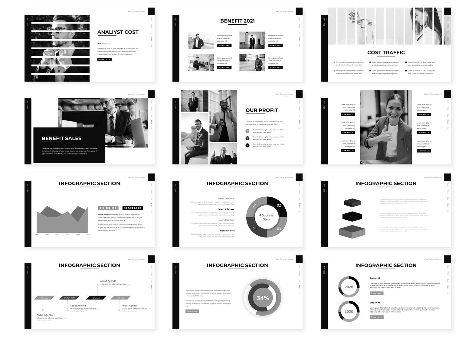 黑白风商业PPT/Keynote/谷歌幻灯片三合一模板,一款出色的 Google 幻灯片模板、Keynote模板和 Powerpoint模板,可满足多用途演示业务或个人需求。此模板上的所有元素均可从 Google 幻灯片、Keynote 模板、Powerpoint 模板形状进行编辑,无需其他软件,只需在模板上编辑即可输入您的内容,将您的图像替换为占位符,所有演示文稿都包含一张动画幻灯片,并向客户展示您的幻灯片。