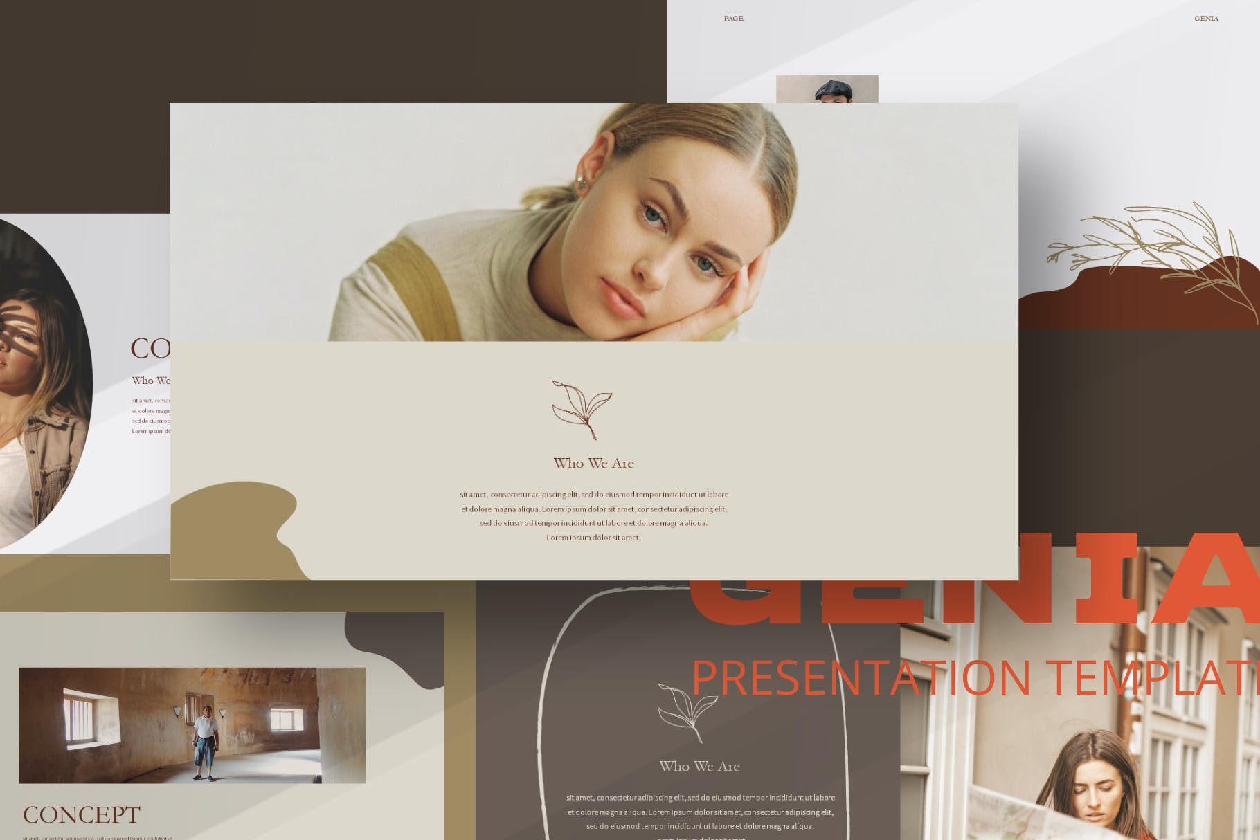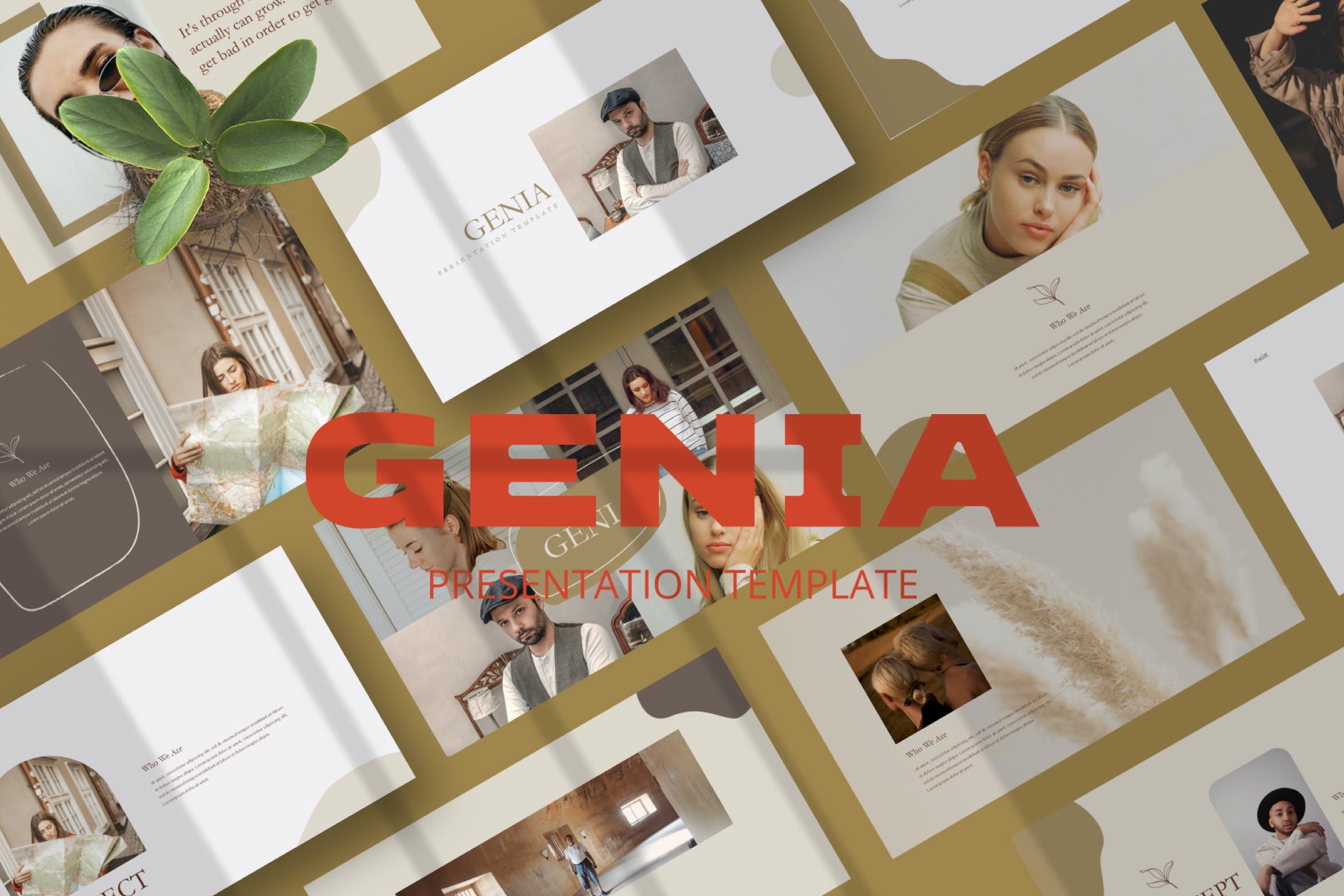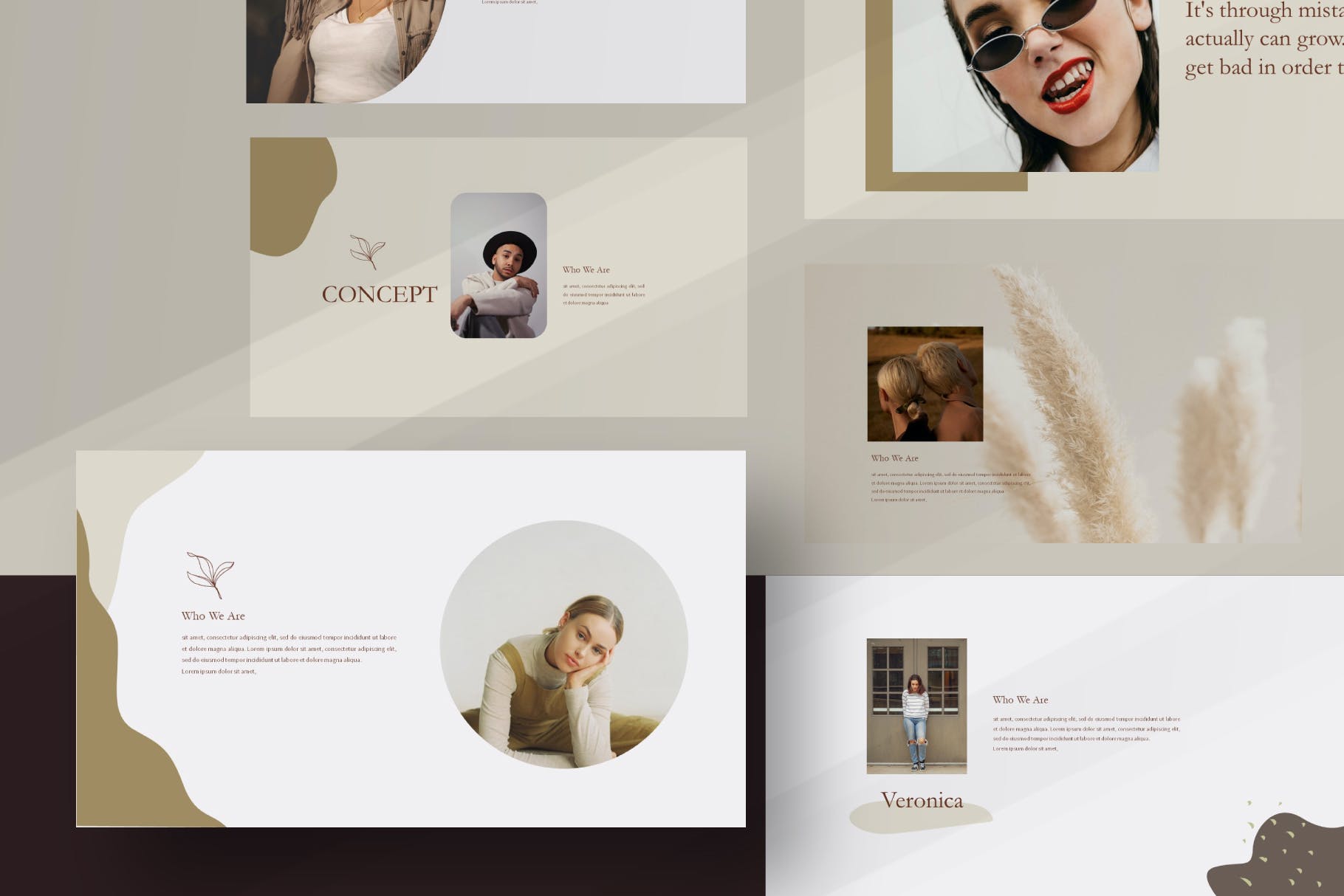 叶子线条艺术幻灯片模板合集