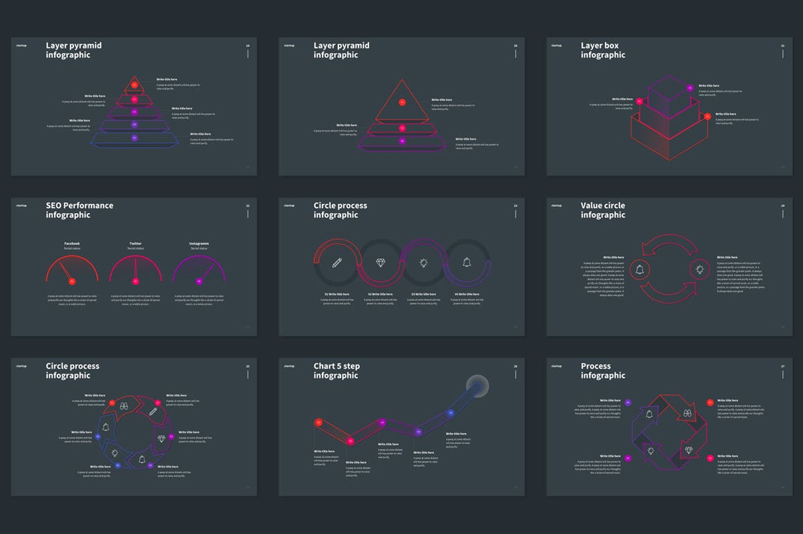 项目流程信息图表Keynote幻灯片模板非常适合您的使用,包括强大的幻灯片、迷人的信息图表、惊人的照片布局、冷色调、地图、智能艺术图表和其他功能。 这是您表达自己、您的业务和您的公司的方式。