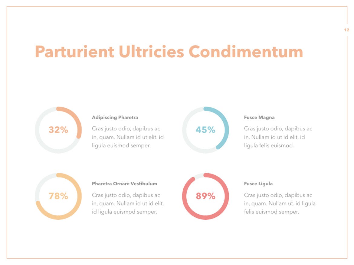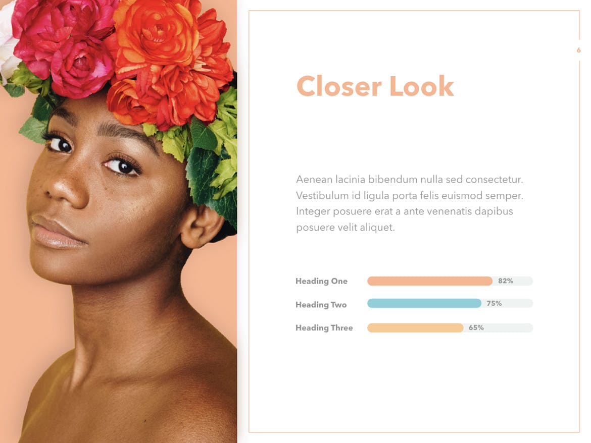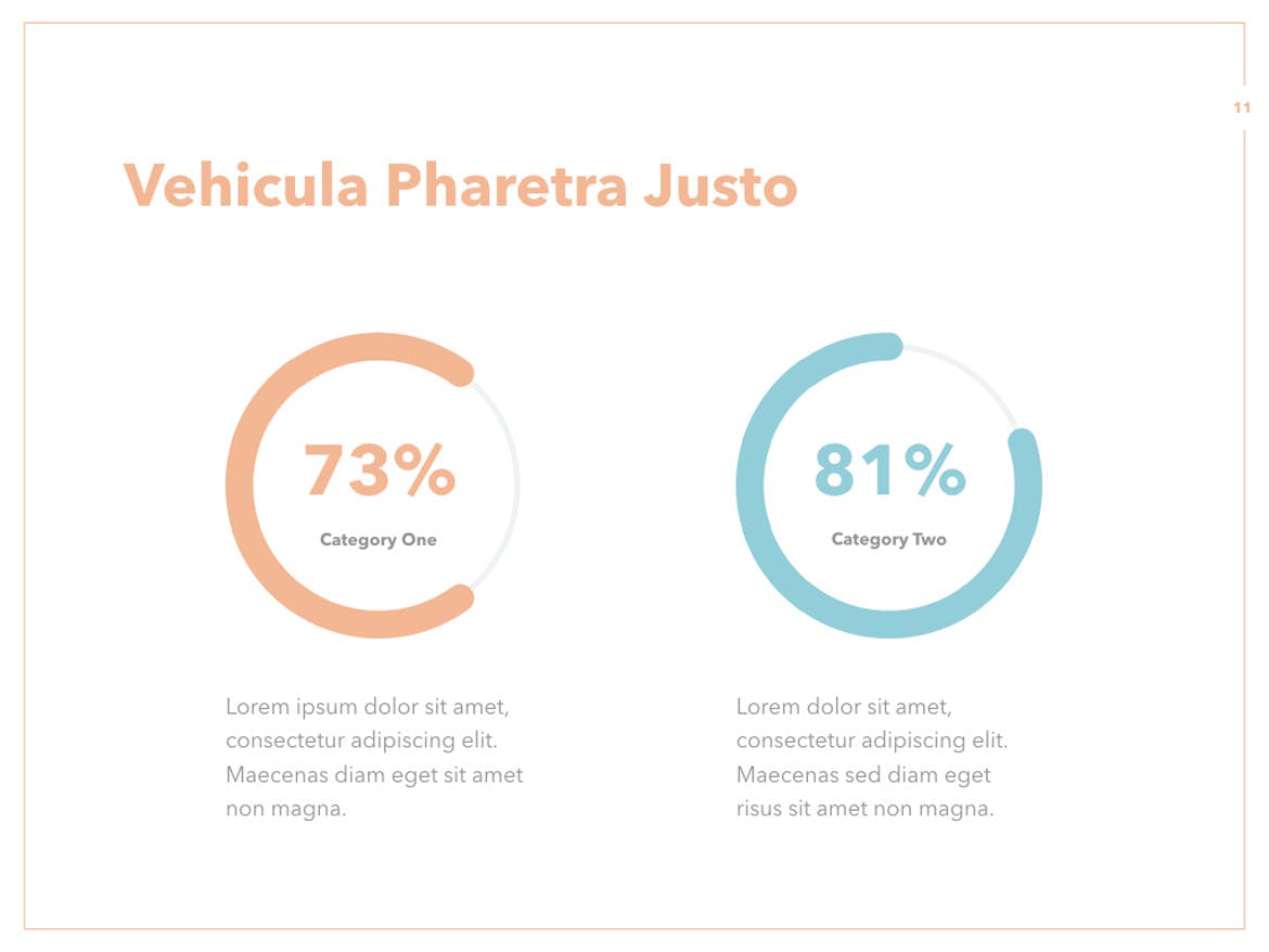 通过编辑母版幻灯片,模板中的大多数对象都可以轻松地重新着色、重塑、移动或删除。 您可以通过对母版的简单修改将背景更改为颜色、渐变或照片。 键入或粘贴您自己的文本,添加和删除文本框,并根据需要更改字体。 编辑图表和图表以适合您的数据。 将您的照片或图片拖到媒体占位符上以替换库存图像。