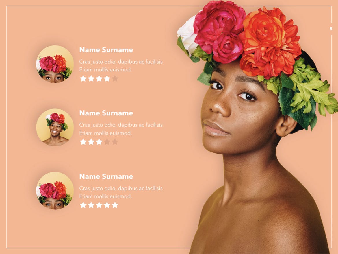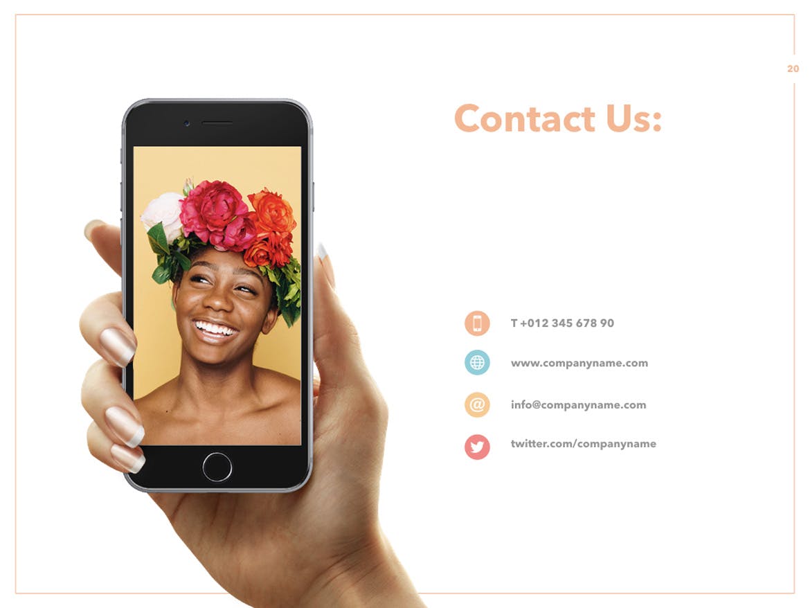 化妆&女性主题演示Keynote模板,为您独特的 Keynote 幻灯片提供了专业的外观。 它包括 20 个母版和 2 个幻灯片尺寸,让您可以为您的信息选择最佳布局。 现代、精美的布局不仅仅是背景、字体和项目符号:它们包含匹配的图表、图表、表格和其他数据可视化元素。 Keynote 6.0及以后版本可以打开和编辑模板。